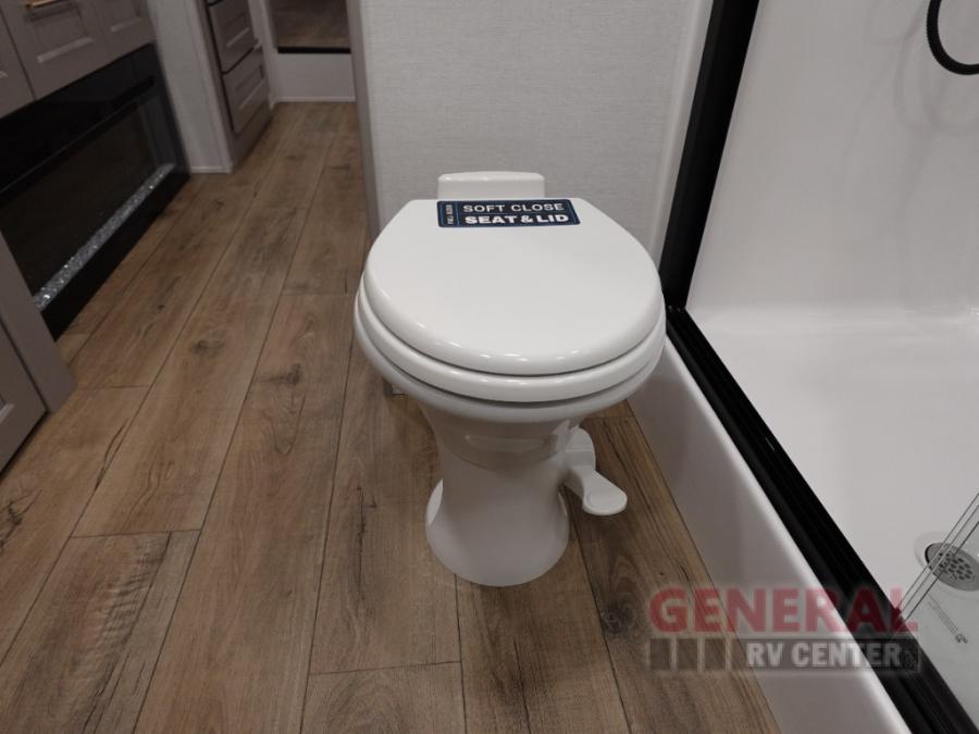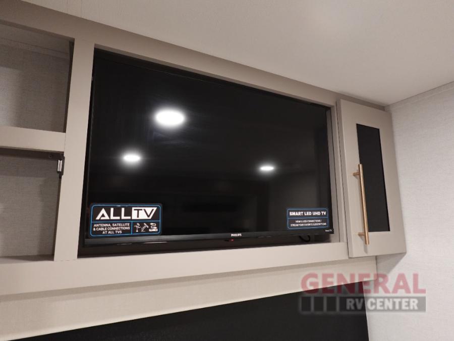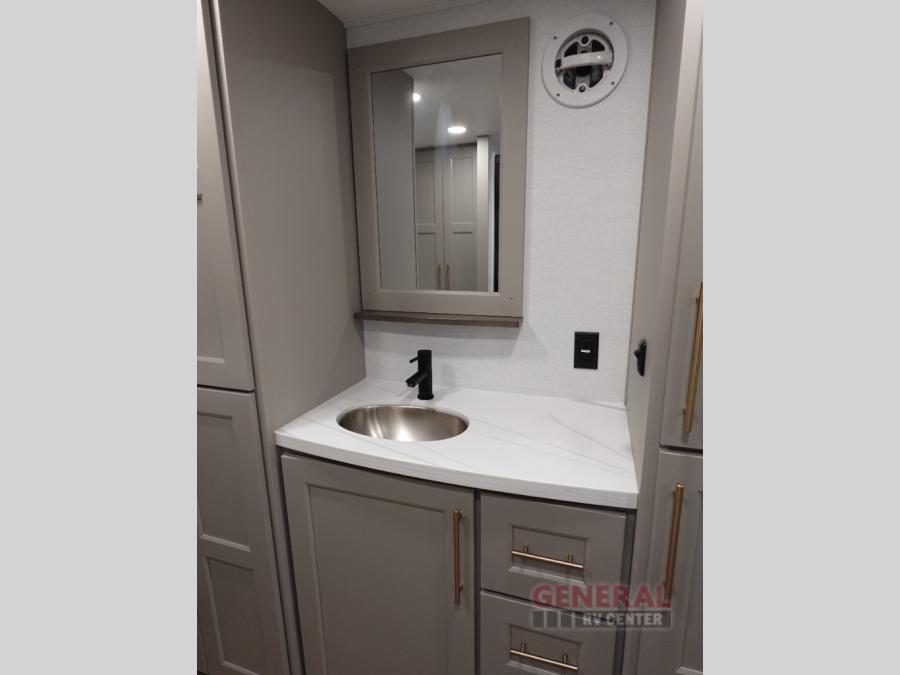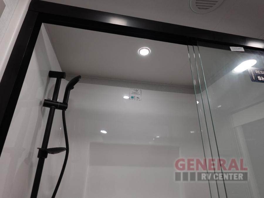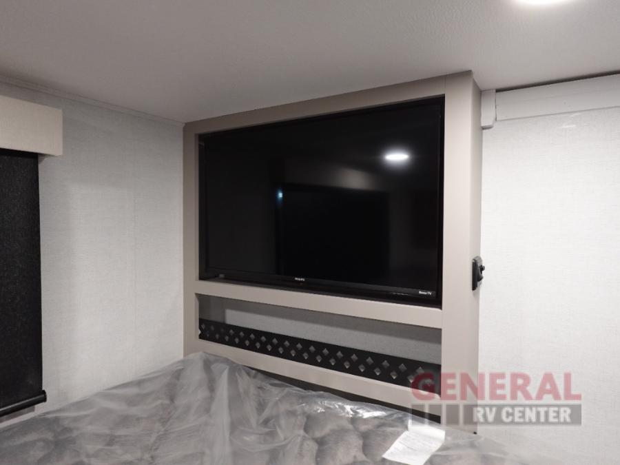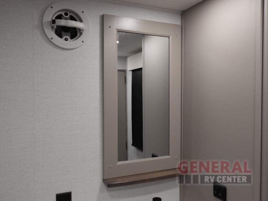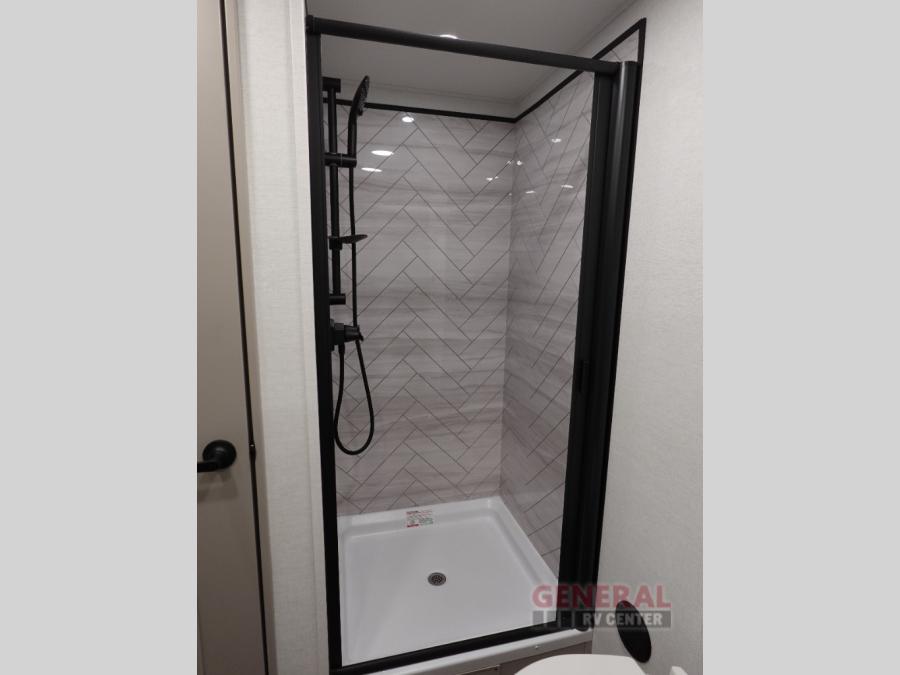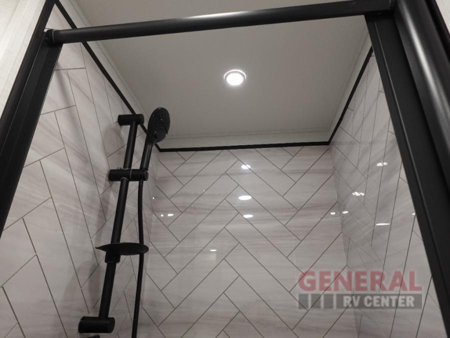 With any Benchmark destination trailer by Alliance RV, you will enjoy luxury features at every turn! The high gloss fiberglass exterior is ultra sleek, and the Azdel composite fiberglass sidewalls add durability so you can camp for years to come. You'll also find a residential exterior garden hose connection outside, along with a powder coated aluminum rear ladder, and an auxiliary LP tank hook up if you want to bring your grill along. Head inside to find hardwood cabinetry, solid surface countertops throughout, oversized windows in all rooms, and MCD roller shades throughout. The 45,000 BTU A/C and 60,000 BTU furnace will keep you comfortable year around, and there is a stackable washer and dryer to make full-time RV living easier than ever!
