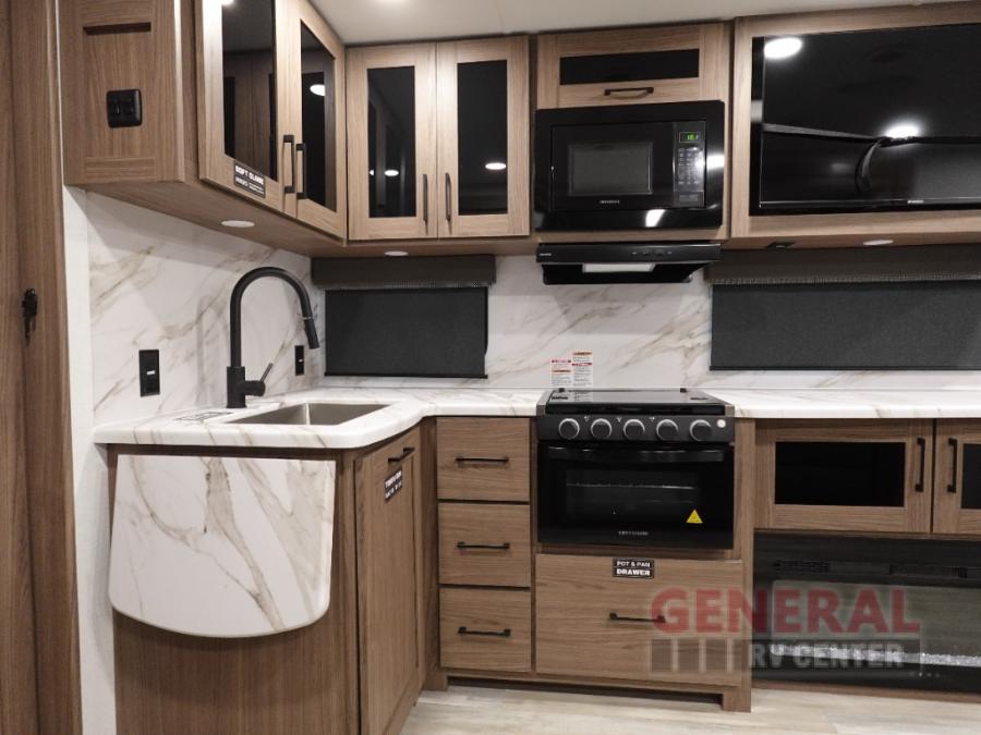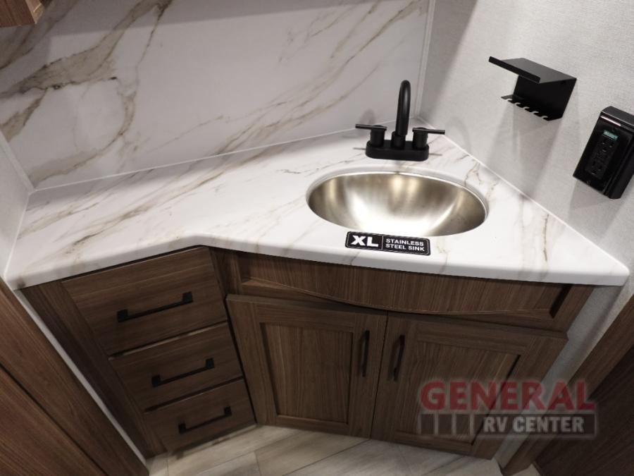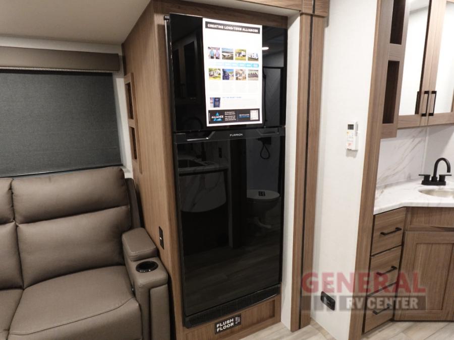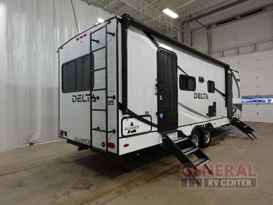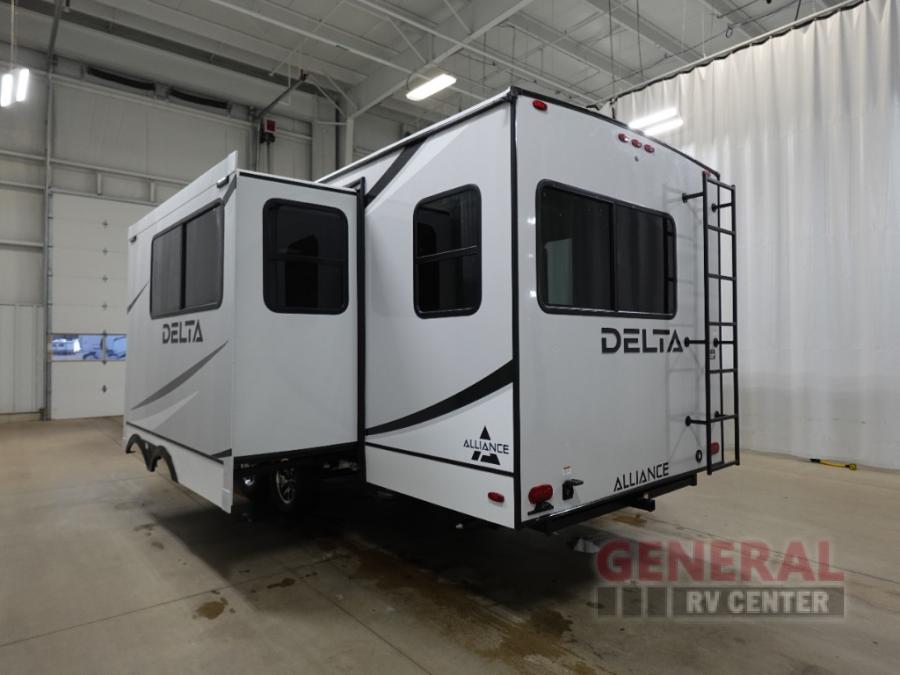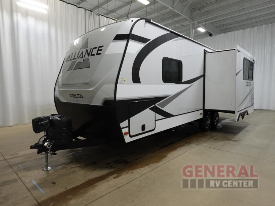 Form and function works together with every one of these Alliance RV Delta travel trailers! They are built with a walk-on roof with a seamless PVC roof covering, Mylar reinforced exterior seals, and a heated and enclosed underbelly to protect your unit in all seasons. The commercial grade vinyl flooring will be easy to clean and the oversized atrium windows throughout let in plenty of natural sunlight. With 62 cu. ft. of drop frame pass-through storage, you can bring along all of your essential camping gear plus it has USB charging for more convenience. There are many at home interior conveniences including a Bluetooth speaker, USB charging throughout, and even a pull-out kitchen trash can. Come find your favorite model today!