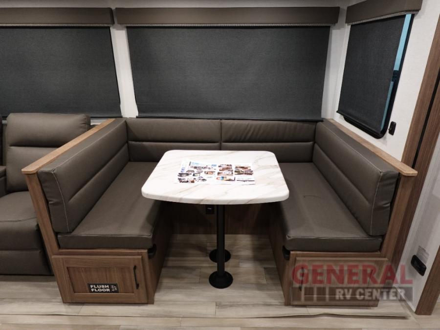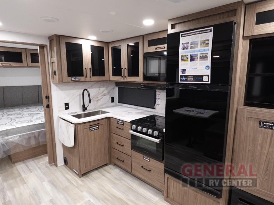 Form and function works together with every one of these Alliance RV Delta travel trailers! They are built with a walk-on roof with a seamless PVC roof covering, Mylar reinforced exterior seals, and a heated and enclosed underbelly to protect your unit in all seasons. The commercial grade vinyl flooring will be easy to clean and the oversized atrium windows throughout let in plenty of natural sunlight. With 62 cu. ft. of drop frame pass-through storage, you can bring along all of your essential camping gear plus it has USB charging for more convenience. There are many at home interior conveniences including a Bluetooth speaker, USB charging throughout, and even a pull-out kitchen trash can. Come find your favorite model today!