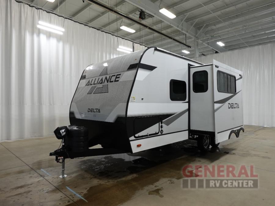 The Delta Ultra Lite travel trailers by Alliance RV are perfect for those looking for a lighter tow weight! The fully functional oversized atrium windows will let more natural light in, and the carpet free interior will be appreciated after a weekend at the lake. There are also magnet catches on all cabinets, soft close cabinet doors, and a kitchen toe kick with LED accent lighting. The exterior includes multiple temperature controlled spray ports, exterior awning controls, and Goodyear Endurance tires. Start a new adventure today in a Delta Ultra Lite travel trailer!