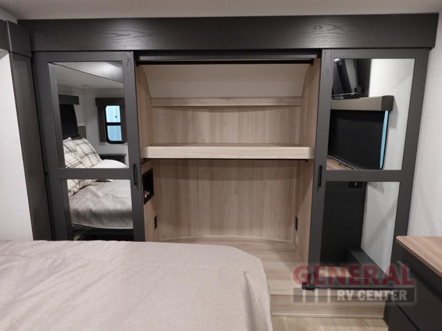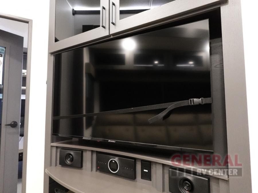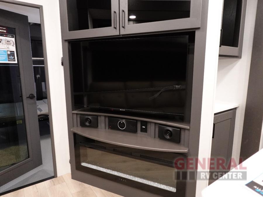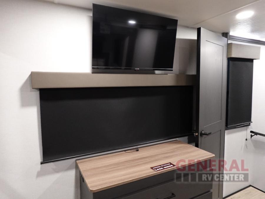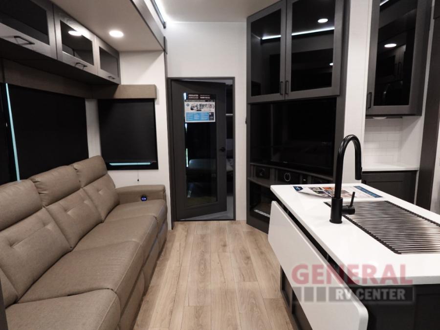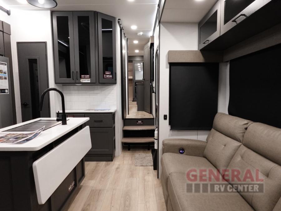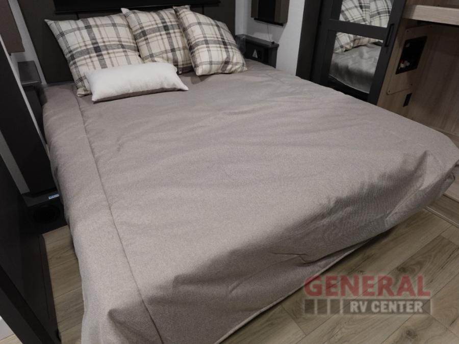 You can bring your toys with you wherever you go with any one of these Alliance RV Valor toy hauler fifth wheels! They are adventure-ready with a quality build from the walk on roof with seamless PVC roof covering to the commercial grade vinyl flooring and MorRyde CRE3000 suspension system. The Performance Running Gear package comes with a 101" wide-body benchmark chassis platform, 7,000 lb. Dexter axles, and a space enhancing drop frame storage compartment to pack in all your riding gear. You can even go off-gridding thanks to the Off the Grid Pack that has two 400 watt solar panels, generator prep, a 40 amp charge controller, and a 100 amp hour lithium iron phosphate battery. Some of the interior comforts you will enjoy are the hardwood cabinet doors and drawers, solid surface kitchen countertops, and commercial grade vinyl flooring with no carpet to make clean up a breeze. The Valor toy haulers are also the Masters of 12 Volt with USB charging station throughout, a stainless steel refrigerator, and more 12 volt features to make camping hassle-free!