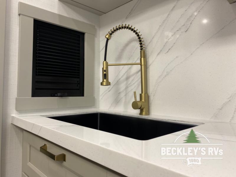 With any Model G toy hauler fifth wheel by Brinkley you will enjoy luxurious amenities, tons of storage space, and innovative features that have been developed and tested in the real world. Durable construction includes an industry leading PDI process, an industry best insulation package, and reinforced and walkable slide roofs. Some of the exterior features you'll find are a 3-way pass-through with a multi-functional flip-up bulkhead wall, under I-beam storage, a MAX-Vision reverse lighting system, and a low-maintenance roof to name a few. A Rockford Fosgate audio system comes standard, along with a OneControl app system that lets you control your fifth wheel's functions right from your mobile device. You will find the solar system with a designated storage area to be ultra convenient, plus there is a FlexPower 5500 with a dual fuel inverter generator for all your power needs. Head inside to find a residential interior with Brinkley's CraftSense wood trim construction, floating entrance steps, integrated window screens and insulated blackout blinds, and residential solid surface countertops plus backsplash. You will also enjoy the neon shower lighting and recessed medicine cabinets in the bath, plus motion activated LED bed lights and dual bedside outlets in the bedroom. Choose a Model G toy hauler fifth wheel to experience all the luxury it has to offer!