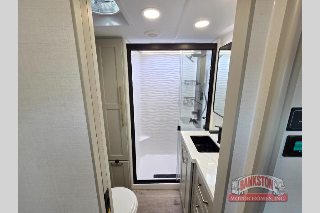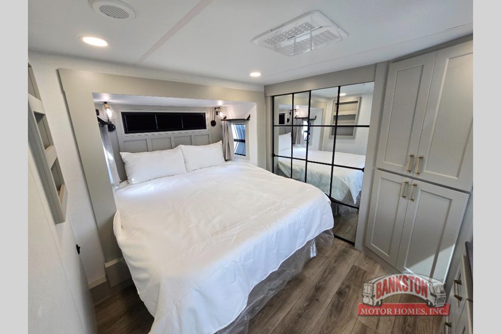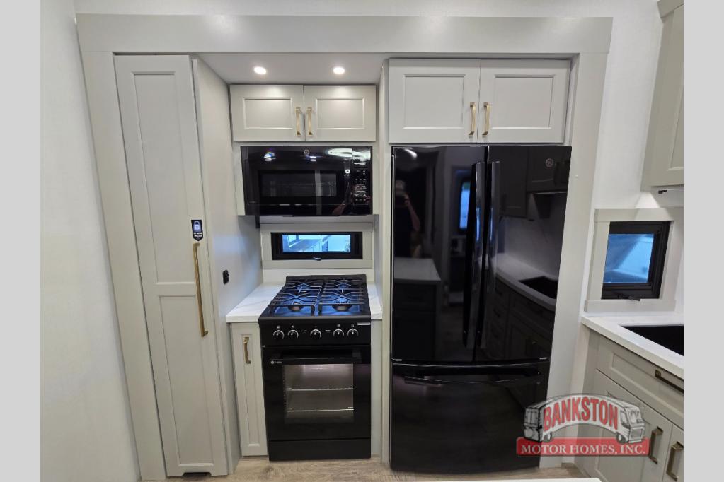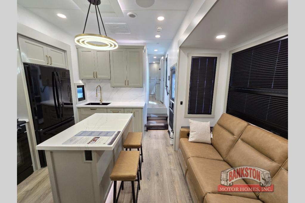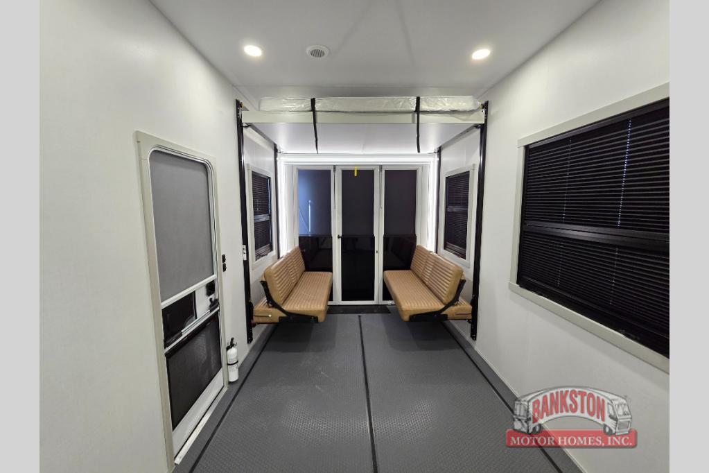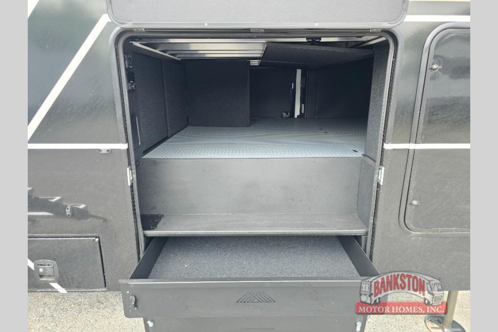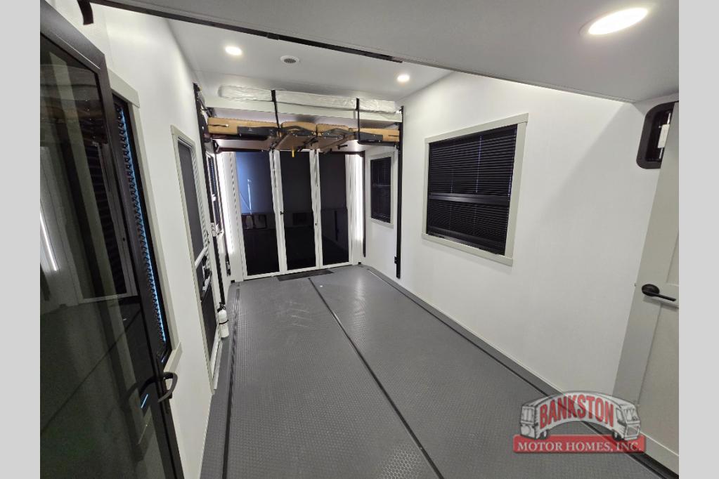 With any Model G toy hauler fifth wheel by Brinkley you will enjoy luxurious amenities, tons of storage space, and innovative features that have been developed and tested in the real world. Durable construction includes an industry leading PDI process, an industry best insulation package, and reinforced and walkable slide roofs. Some of the exterior features you'll find are a 3-way pass-through with a multi-functional flip-up bulkhead wall, under I-beam storage, a MAX-Vision reverse lighting system, and a low-maintenance roof to name a few. A Rockford Fosgate audio system comes standard, along with a OneControl app system that lets you control your fifth wheel's functions right from your mobile device. You will find the solar system with a designated storage area to be ultra convenient, plus there is a FlexPower 5500 with a dual fuel inverter generator for all your power needs. Head inside to find a residential interior with Brinkley's CraftSense wood trim construction, floating entrance steps, integrated window screens and insulated blackout blinds, and residential solid surface countertops plus backsplash. You will also enjoy the neon shower lighting and recessed medicine cabinets in the bath, plus motion activated LED bed lights and dual bedside outlets in the bedroom. Choose a Model G toy hauler fifth wheel to experience all the luxury it has to offer!
