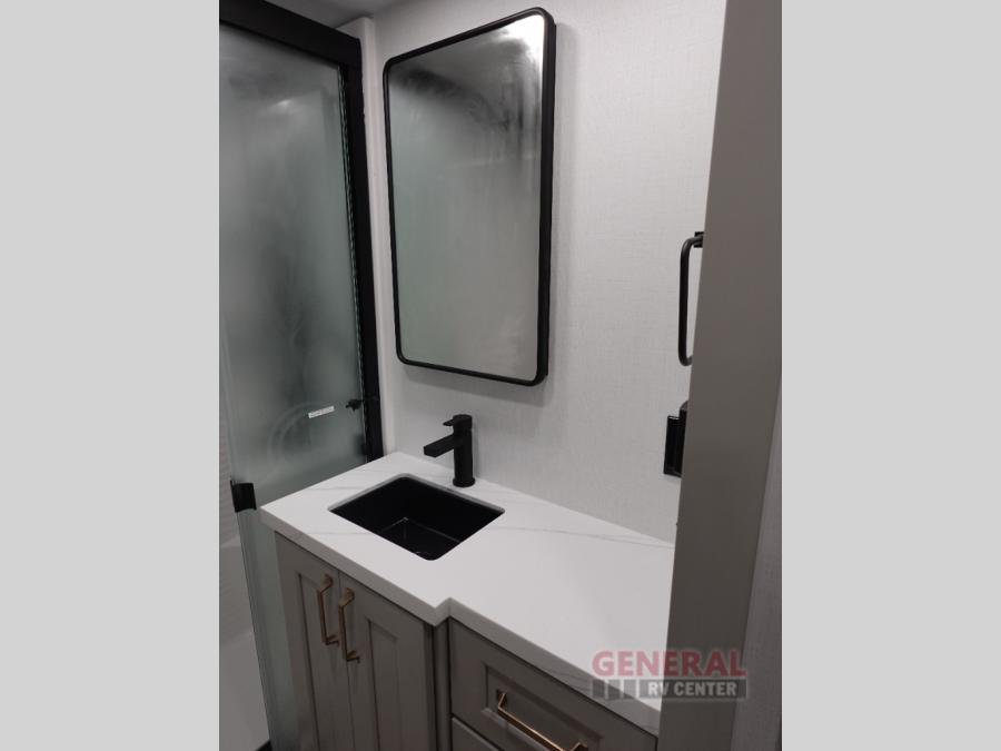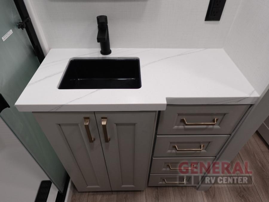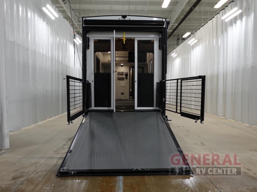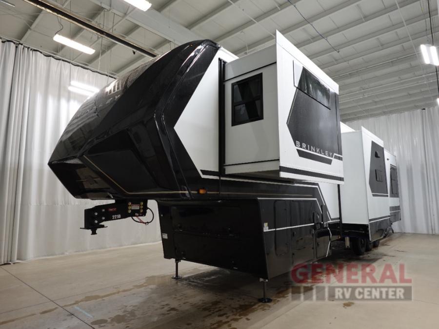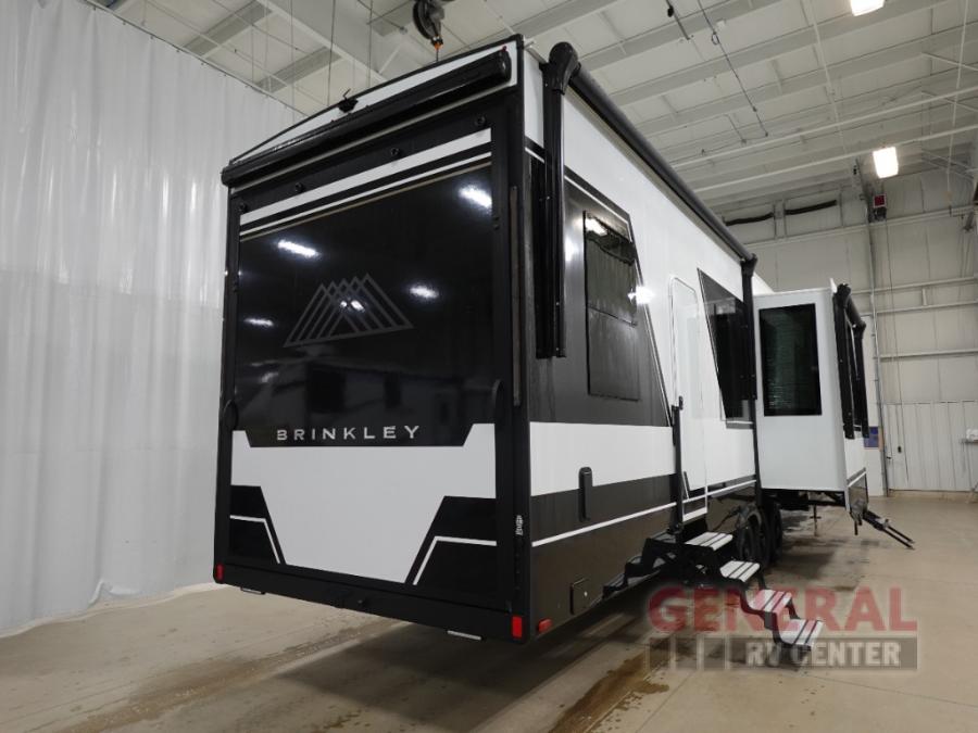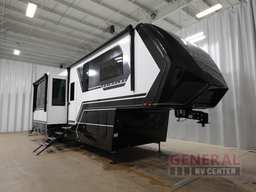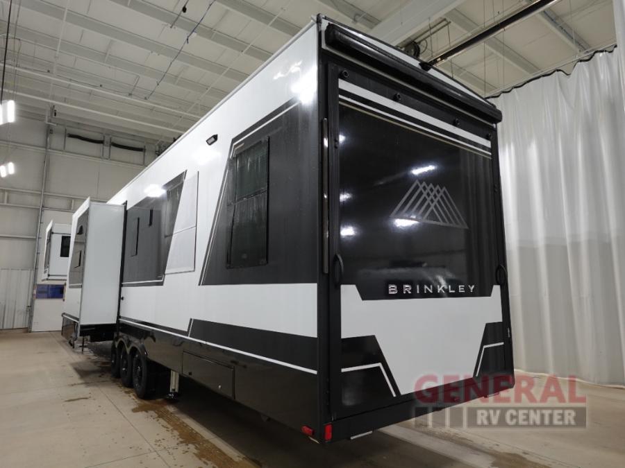 With any Model G toy hauler fifth wheel by Brinkley you will enjoy luxurious amenities, tons of storage space, and innovative features that have been developed and tested in the real world. Durable construction includes an industry leading PDI process, an industry best insulation package, and reinforced and walkable slide roofs. Some of the exterior features you'll find are a 3-way pass-through with a multi-functional flip-up bulkhead wall, under I-beam storage, a MAX-Vision reverse lighting system, and a low-maintenance roof to name a few. A Rockford Fosgate audio system comes standard, along with a OneControl app system that lets you control your fifth wheel's functions right from your mobile device. You will find the solar system with a designated storage area to be ultra convenient, plus there is a FlexPower 5500 with a dual fuel inverter generator for all your power needs. Head inside to find a residential interior with Brinkley's CraftSense wood trim construction, floating entrance steps, integrated window screens and insulated blackout blinds, and residential solid surface countertops plus backsplash. You will also enjoy the neon shower lighting and recessed medicine cabinets in the bath, plus motion activated LED bed lights and dual bedside outlets in the bedroom. Choose a Model G toy hauler fifth wheel to experience all the luxury it has to offer!