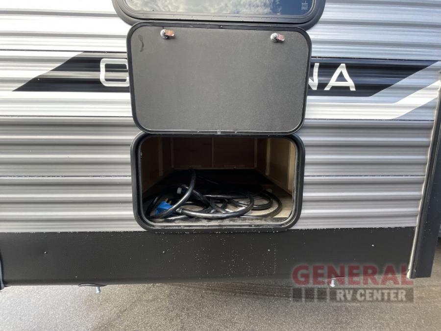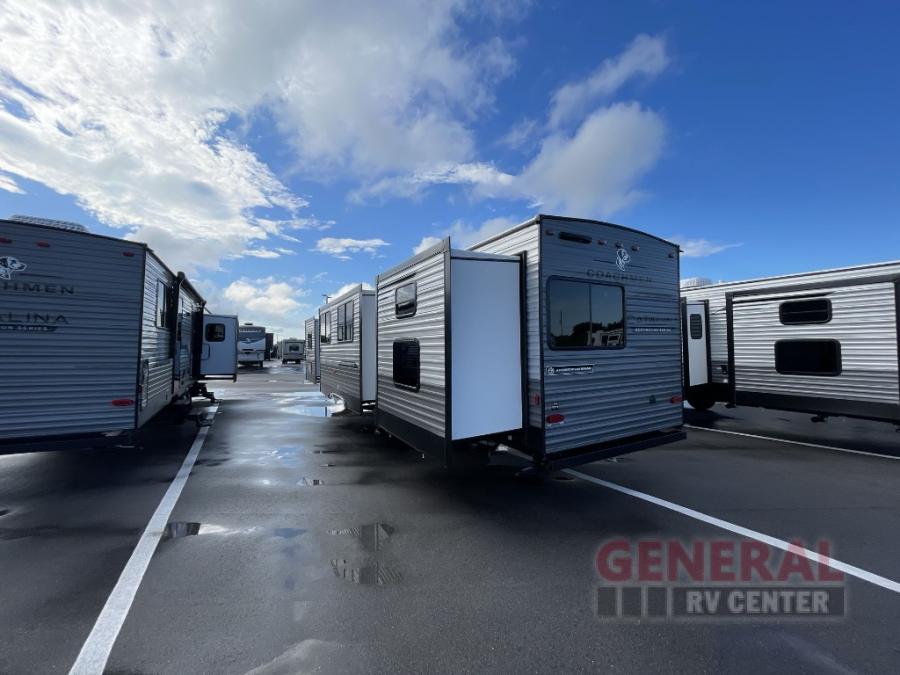 With any Catalina Destination trailer by Coachmen, you will enjoy comfortable extended stays wherever you decide to set up camp! The full length frame outriggers add strength to each unit, along with a seamless Alpha Roof membrane and Norco electromagnetic, powder coated chassis. You will love the open views provided by the large front bay windows, plus there are GE appliances, woodplank linoleum flooring, and hard valance window treatments to make your space feel more like home. Head outside to find a convenient "Leash Link" quick hookup D-ring for your furry friends, premium JBL exterior speakers, flush mount baggage doors for your gear, and the list of amenities goes on!