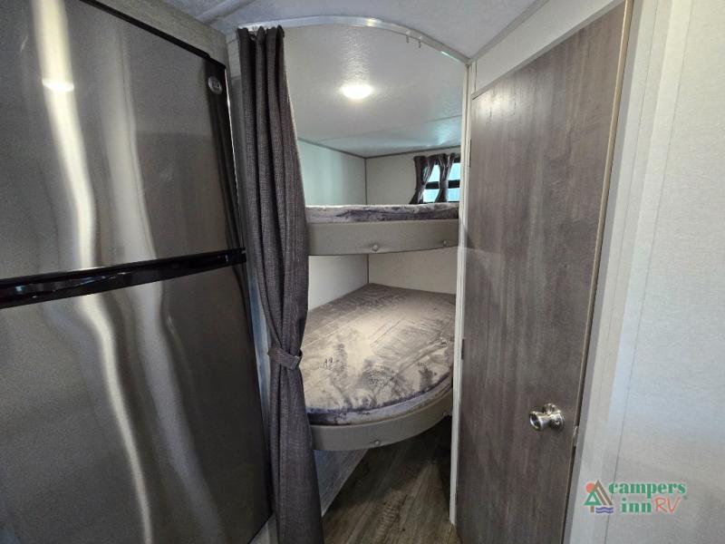 - Cozy Sleeping Accommodations: A front queen bed and rear bunk beds offer restful retreats for up to five campers.