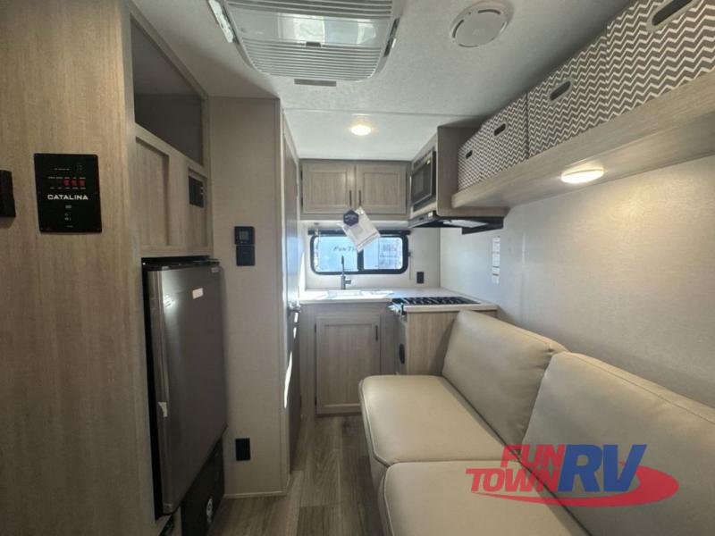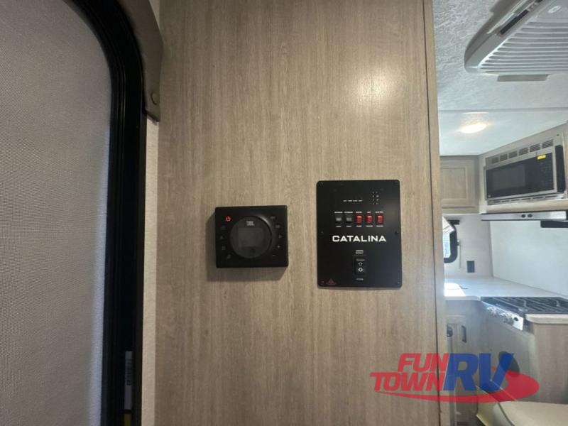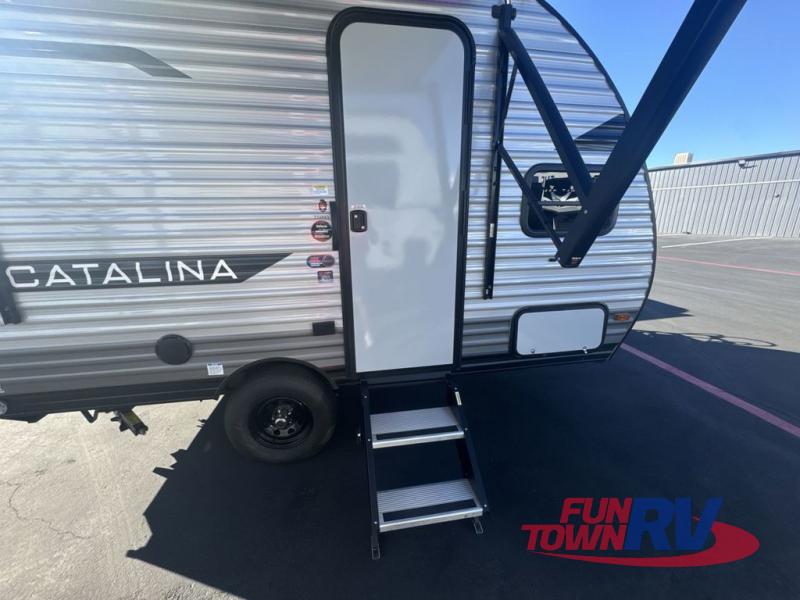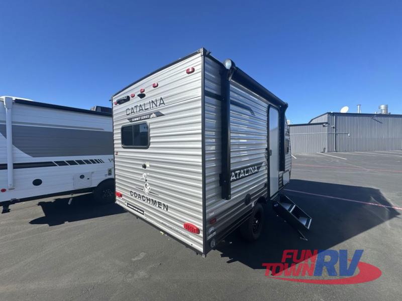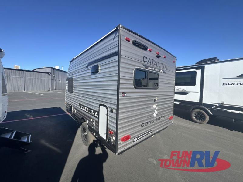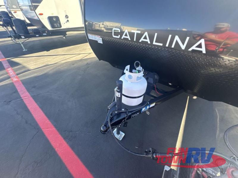 With any Catalina Summit Series 7' by Coachmen RV, you can create an easier adventure with the versatility and simplicity of the shorter lengths and lighter weights! Each includes a premium exterior graphics package, a smooth HD aluminum radius front, and EZ lube axles with leaf spring suspension. The exterior offers a heavy duty standard tongue jack, a diamond plate rock guard to protect against road debris, exterior RG-6 coax cabling and satellite prep, rear view camera prep, and flush mount baggage doors with radius corners for your outdoor gear. Inside, you will enjoy a premium JBL interior speaker, USB charging ports, seamless Thermofoil countertops throughout, a deep basin farm style sink for easy cleanup, and GE kitchen appliances. It's time to choose an affordable and maneuverable single axle trailer today!