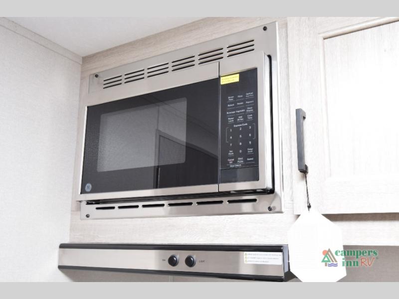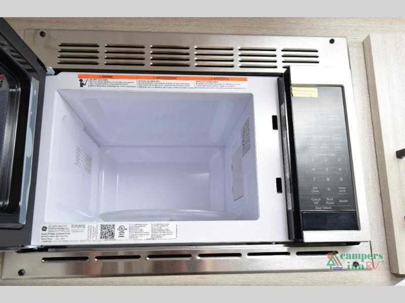 - GE Kitchen Appliances: The GE two-burner cooktop, GE stainless microwave, and 3.3-cu. ft. 12V refrigerator provide all the tools you need to prepare meals and keep food fresh on your travels.