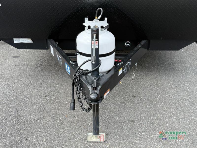 Heavy-duty tongue jack, diamond plate rock guard on front.