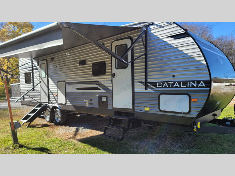 The best looking, most affordable toy hauler is found in the Catalina Trailer Blazer by Coachmen. Each one is constructed with a seamless alpha roof membrane, an enclosed and fully sealed underbelly, and a cambered structural steel I-beam frame for added support. There is a rear loading cargo door with a 3,000 lb. capacity, a black out screen wall with a zip walk-thru and windows, plus 500 lb. tie-downs to secure your toys. You'll love the interior with its Congoleum woodplank linoleum flooring and LED interior lighting. Head outside to find an electric awning with multicolored LED lights and a remote, a 15' Toy Loc cable, a "Leash Link" quick hookup D-ring for pets, and upgraded aluminum wheels. The Catalina Trail Blazer also comes with RV-LINK 4G LTE connectivity with a WiFi booster and extender, a JBL Aura Cube media center, plus premium JBL interior speakers for your pleasure!