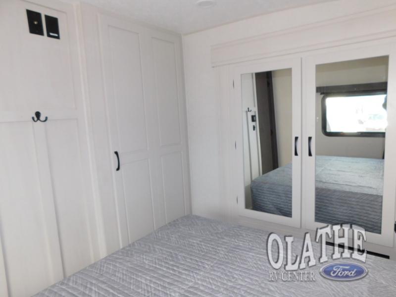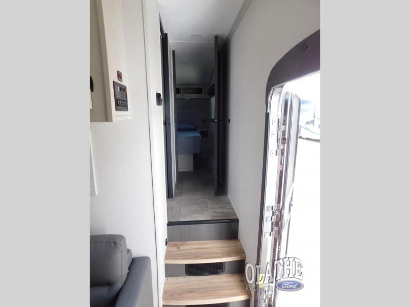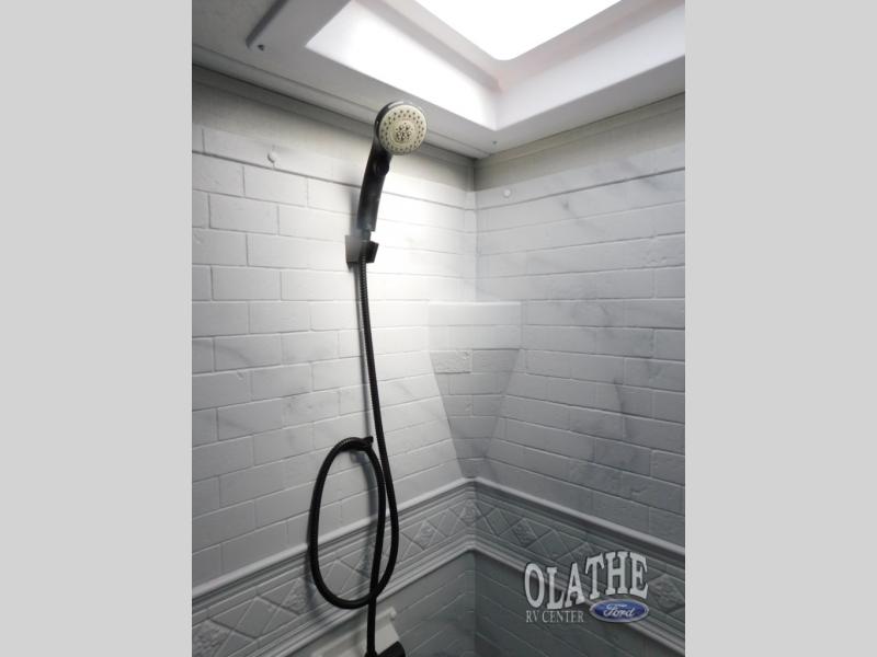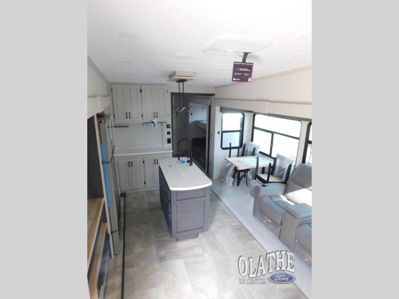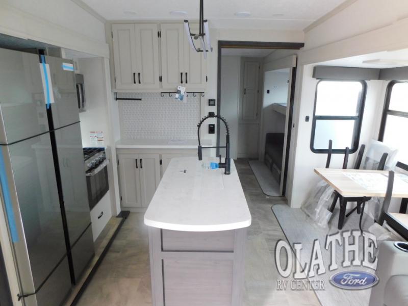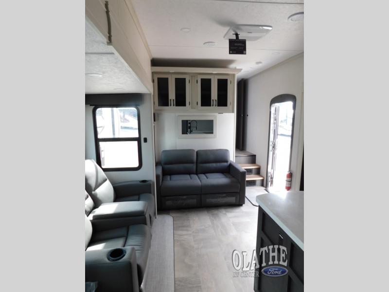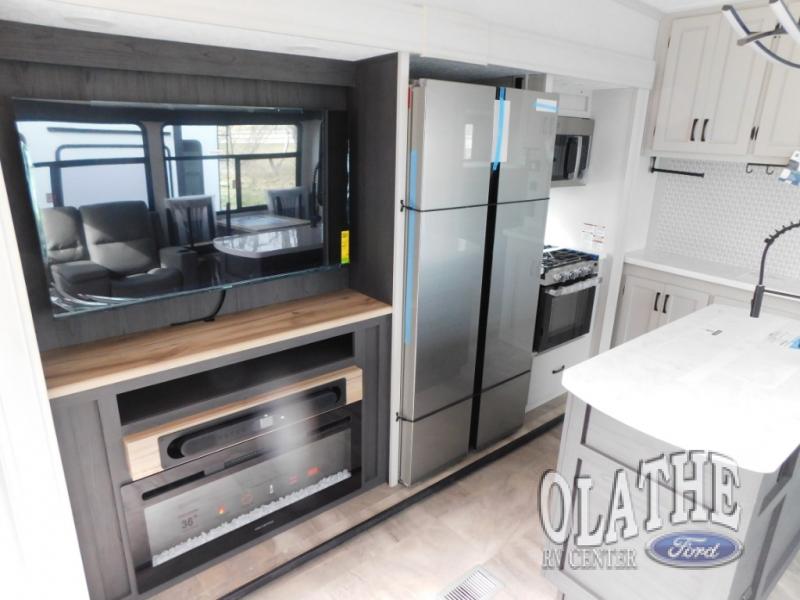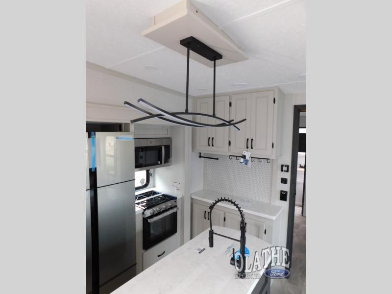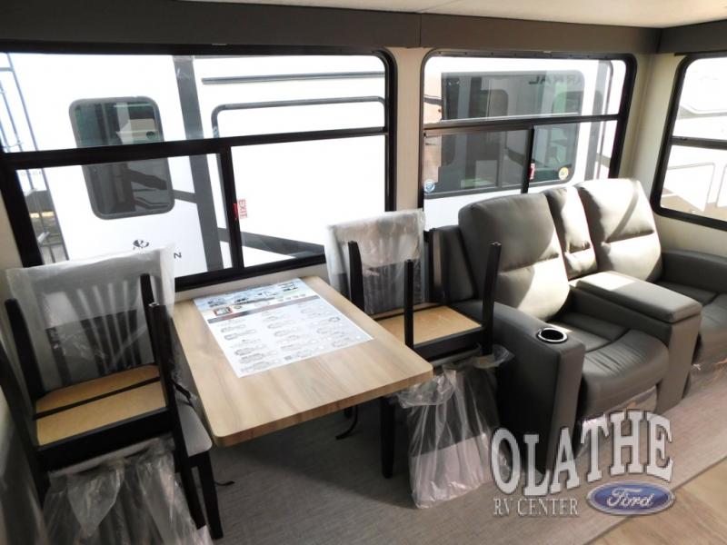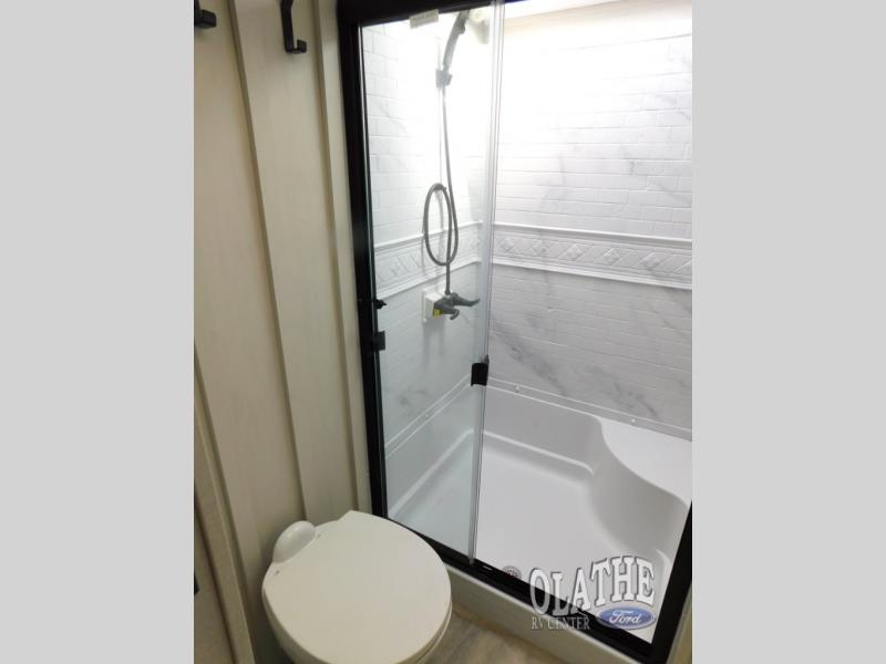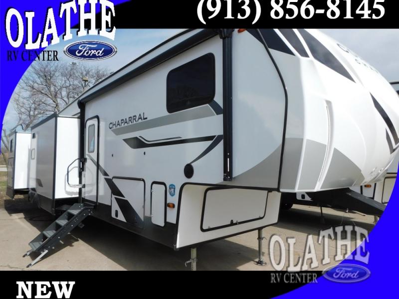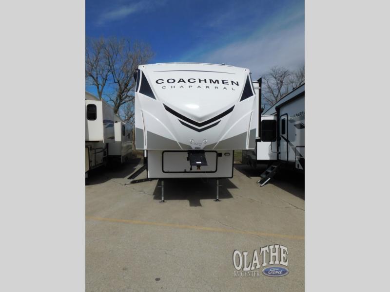 Each Chaparral mid-profile fifth wheel by Coachmen is designed with residential features, loads of storage space, and roomy bedroom suites to make you feel right at home. The durable construction means you can enjoy your RV for years to come. There's 6X double Azdel aluminum cage sidewall system, Weather Shield+ technology, and Tri-Tex powder coated frame technology that will allow you to camp year around. Each model includes a Winegard Air 360+ HDTV/radio dome antenna to help keep you connected as you camp, slow rise blackout roller night shades, a new 16 cu. ft. side-by-side stainless glass 12V refrigerator, and a modern electric fireplace to make your space cozy. There is also a large transom window in the kitchen, a modern high-rise faucet, LED motion sensor lights in the bathroom, plus a full-size shower with glass doors and a seat. Now that's what I call luxury! Choose a Chaparral fifth wheel today!