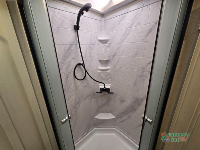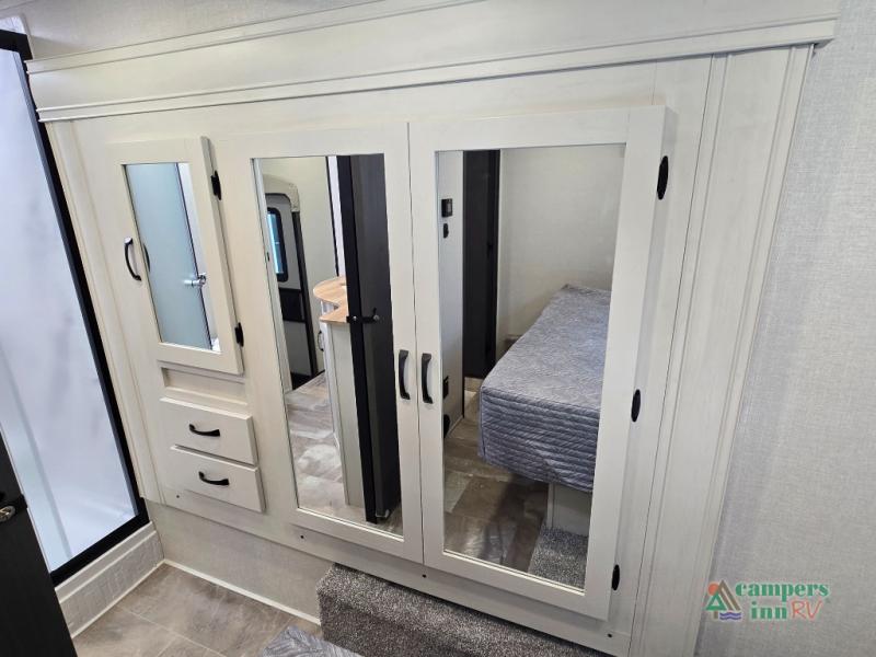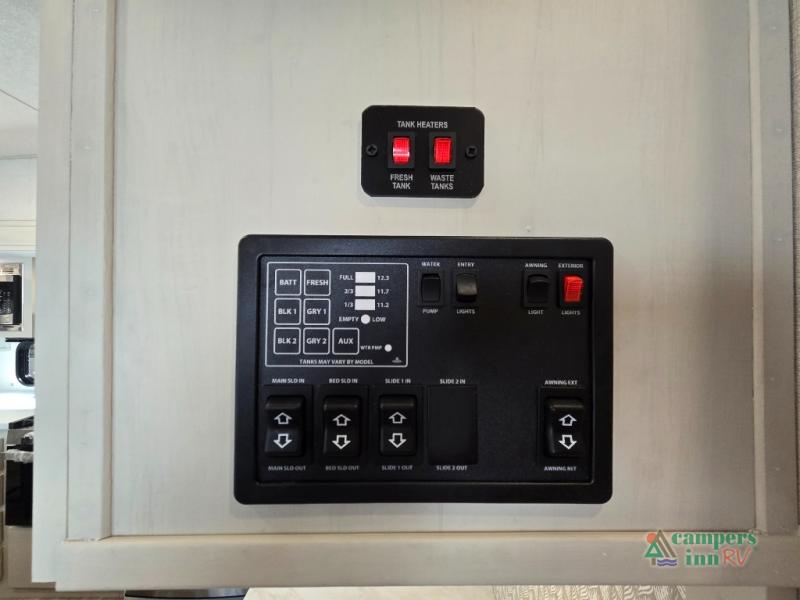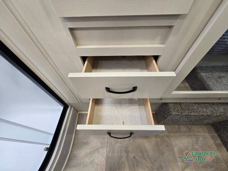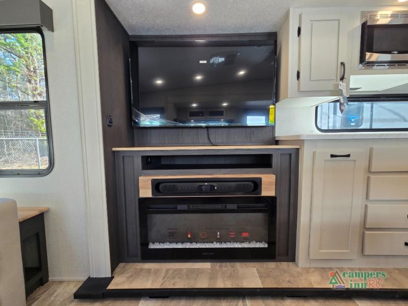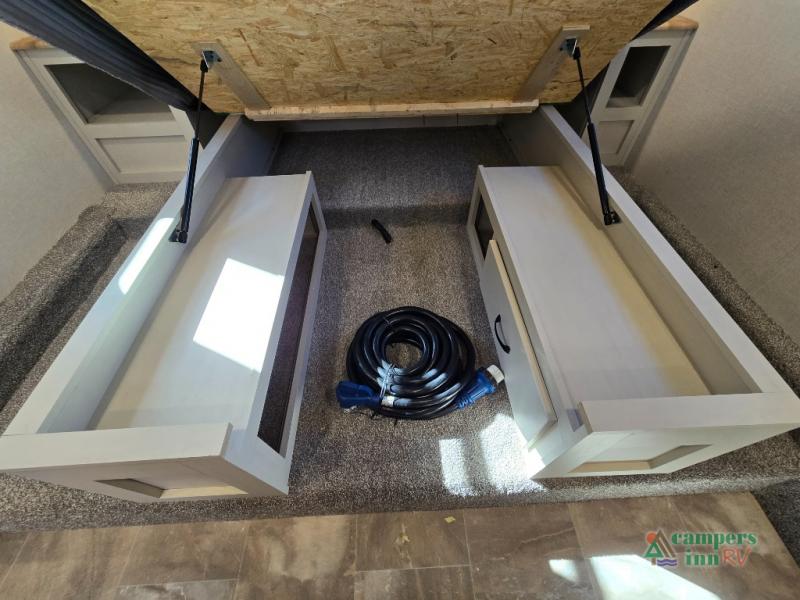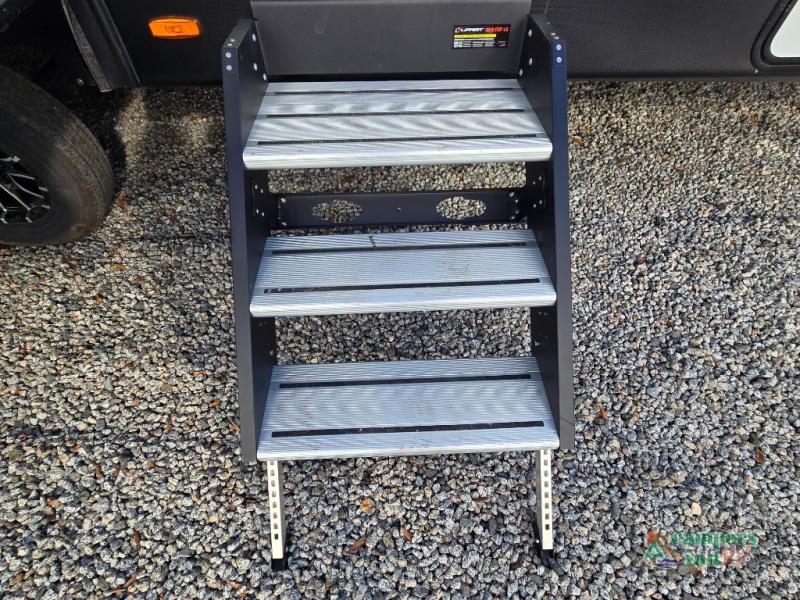 - Exterior Features: The electric awning with LED lights, Solid Step entry steps, and pass-through storage make outdoor living just as enjoyable as indoors.