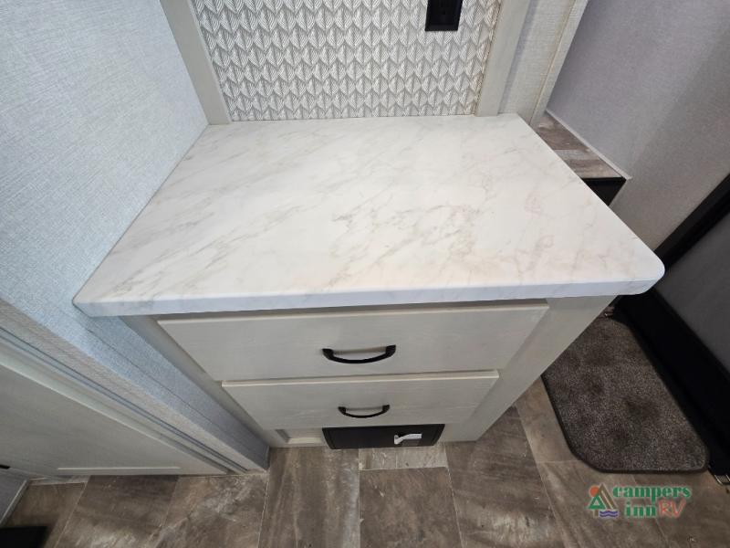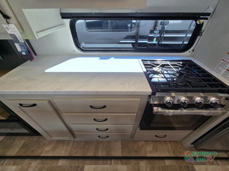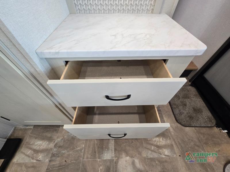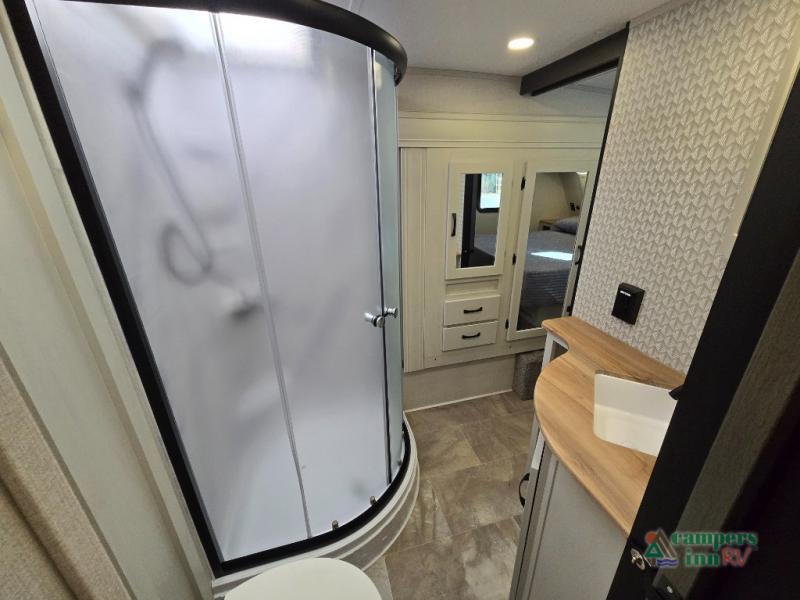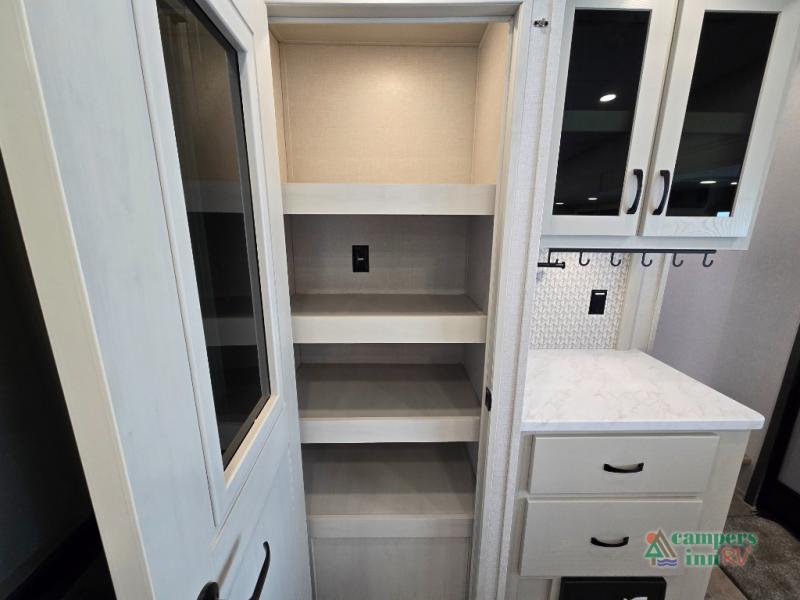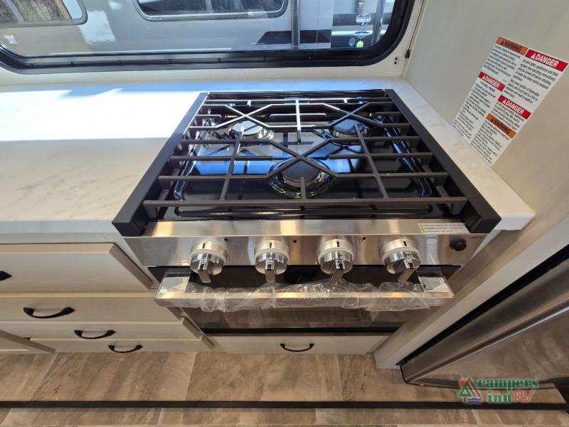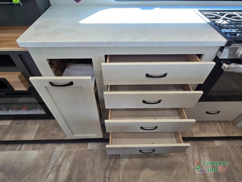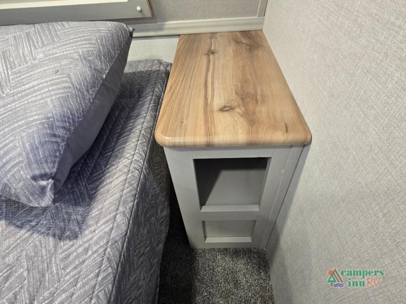 - Exterior Features: The electric awning with LED lights, Solid Step entry steps, and pass-through storage make outdoor living just as enjoyable as indoors.