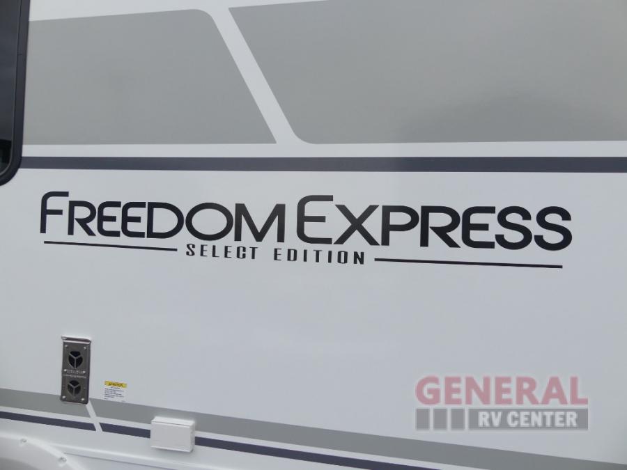 With any Freedom Express Select travel trailer by Coachmen you will find an alumicage construction and vacuum bonded walls with Azdel composite for a trailer made to last. These Select value models come standard with a Bluetooth interior speaker, night shades, and wear-resistant vinyl flooring throughout. You will appreciate the power tongue jack, as well as the Tufflex PVC roof and heated and enclosed underbelly to extend your camping season. A 15K BTU roof A/C will keep you comfortable, and the tankless water heater will provide endless hot showers!