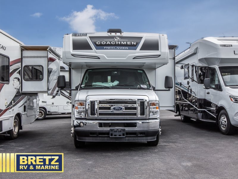 The Freelander Class C gas motorhome by Coachmen is a wonderful choice for anyone looking to get out on the road. A wide variety of floorplans and features offers something for everyone. The Azdel composite sidewalls and seamless one-piece roof membrane provide a solid structure to enjoy all your trips. Conveniences like storage above entrance door with an HDMI and charge station and reclining cockpit seats are standard, along with a rear color backup camera, a premium showerhead and faucet, and one-piece thermofoil countertops. The mandatory Explorer Package includes an exterior shower to rinse off before entering inside and an on-demand tankless water heater for hot water fast. Come find your favorite one today!