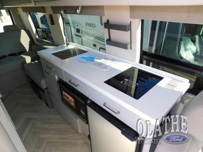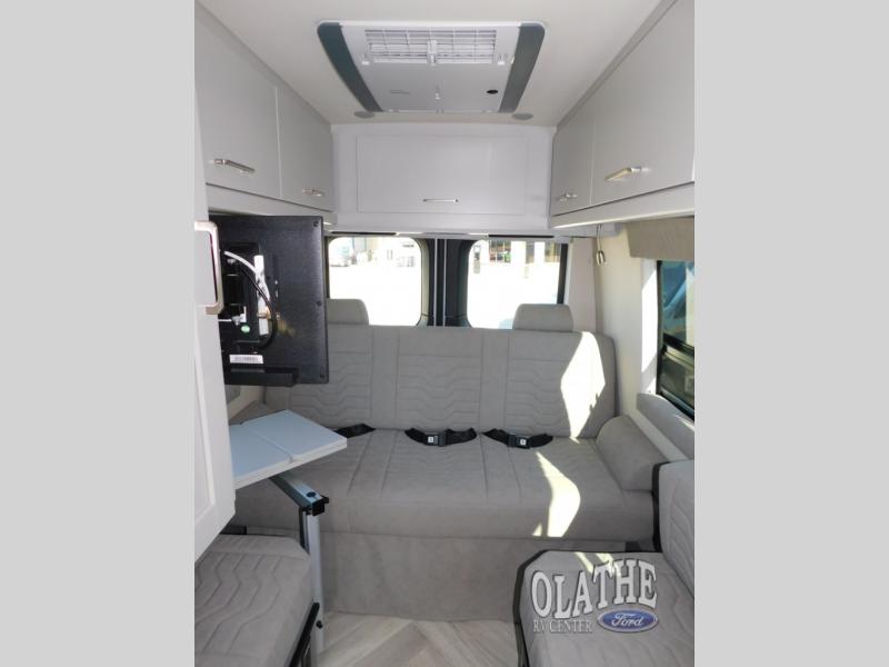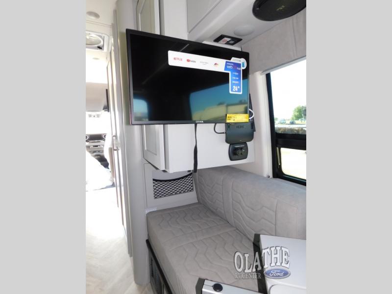 Experience all of the colors of the season with this motorhome! With four captain's chairs, everyone will have a comfortable place to sit while you travel and you could even get some work done with the removable table in between them all. The full galley has everything you need to prepare home cooked meals like a single burner cooktop and a refrigerator. Stay squeaky clean with the wet bath including a sink and shower that has an Oxygenics Fury handheld shower head with on/off switch. Above one of the jump seats there is an overhead wardrobe and a 24" LED Smart TV. The rear sofa can fold out to create a sleeping area in combination with the two jump seats so you can have a good night's rest each night! Available with optional 4x4 chassis. See dealer for details.