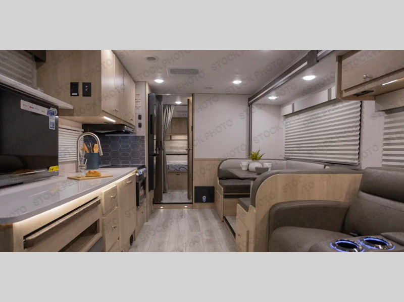 With each Leprechaun Class C gas motorhome by Coachmen you will enjoy "better" interior appointments, like the residential-sized beds, on-demand tankless water heater, and 15,000 BTU A/C. A dash radio and a backup monitor will let you easily navigate the open road like pro. There are also pleated night shades inside, along with premium vinyl flooring, a shower skylight, and USB charging ports to name a few comforts and conveniences. The Leprechaun is constructed with composite sidewall and cabover floor construction plus a seamless one-piece roof material for a durable motorhome made to last.