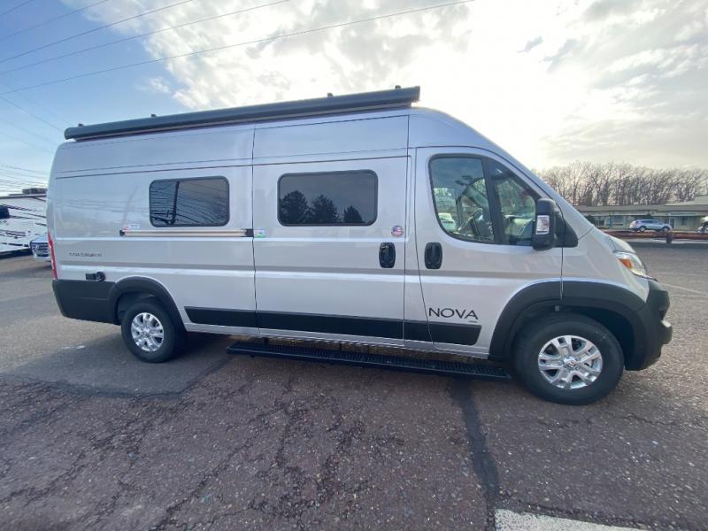 Each Nova Class B gas motorhome by Coachmen features Sumo Spring front and rear suspension for a smooth ride. Each unit is built on a Ram ProMaster 3500 chassis, and is powered by a 3.6L V6, 24 valve engine with 280 HP. You will appreciate the innovative Firefly multiplex system, the Sure Level tank sensors, and the 3 Group 31, 115AH AGM batteries for added power, as well as a new 24" LED Smart TV to help keep you entertained on long trips. Inside, you'll find solid hardwood cabinetry, a fiberglass shower verses the competitors ABS shower, a remote control MaxxAir fan with a rain sensor, and many more comforts to make you feel right at home. There is also a Truma Aventa 13,500 BTU A/C with three speeds, a dehumidifier, and night mode to ensure your comfort throughout each trip!