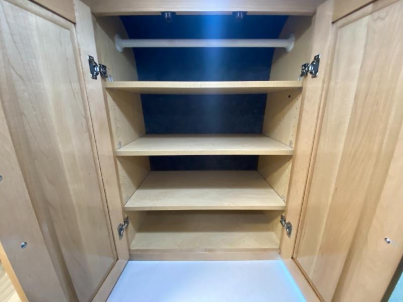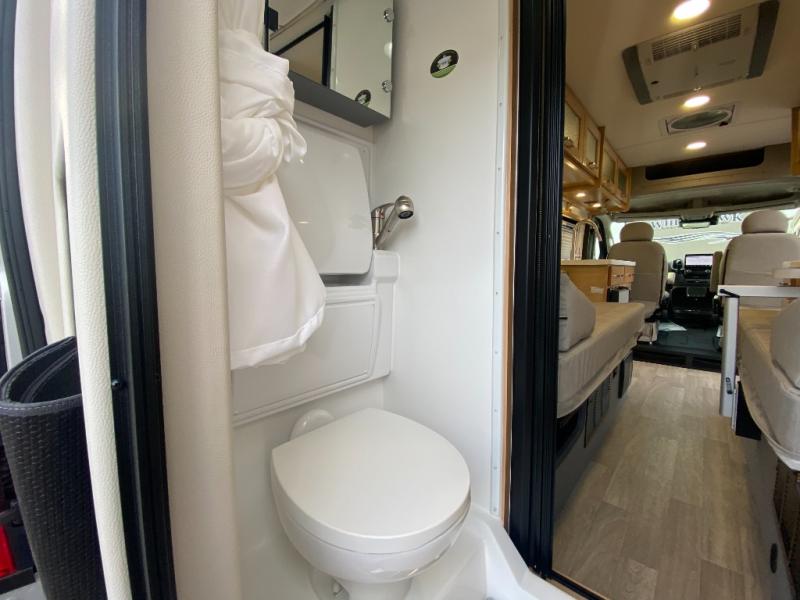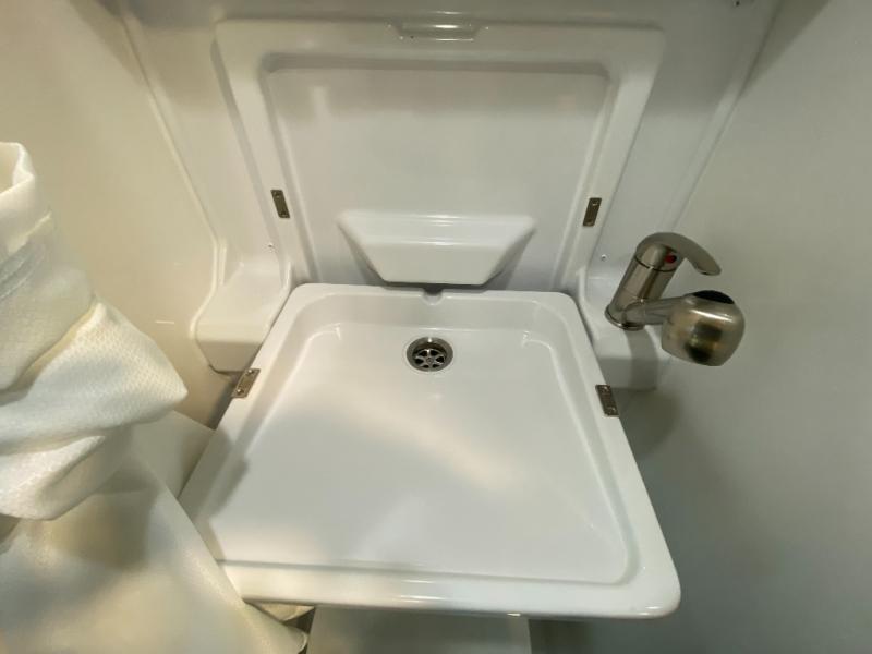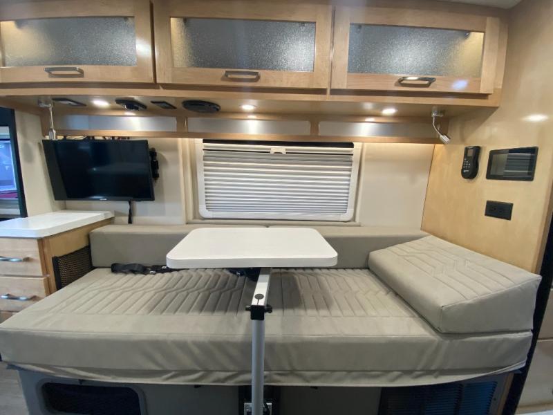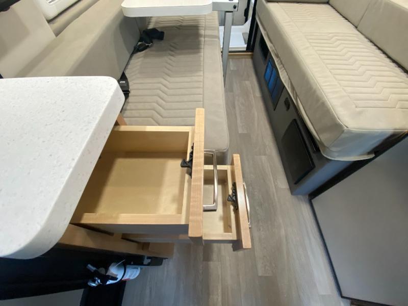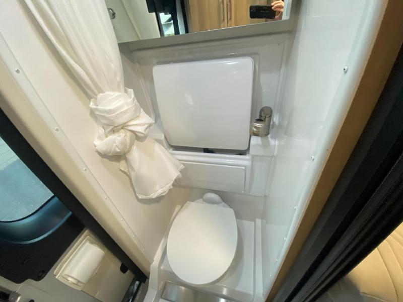 This camper van with a full rear bath will meet your needs surprisingly well. Two twin beds will provide comfortable sleeping space each night, and the lagun table in between the beds will be the perfect place to enjoy breakfast together. There is a bath wardrobe to keep your clothes tidy, plus you'll find overhead cabinets above the beds and additional storage just as you enter the coach for your belongings. This coach also includes swivel captain's seats with a removable table for even more seating and dining space.