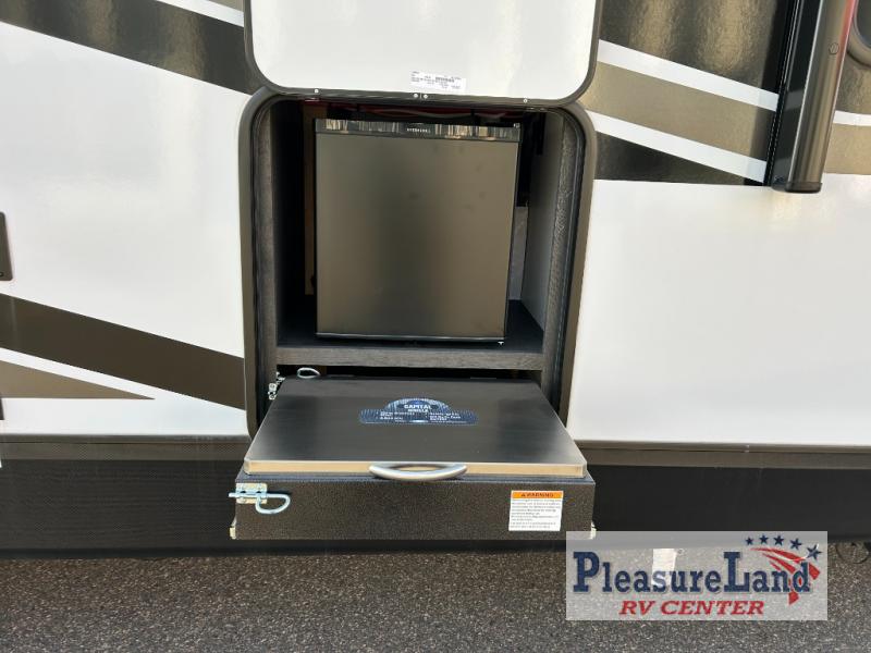 Your family or group of friends will love camping in this spacious travel trailer. The large slide out provides more space to let the dog nap on the floor, and the dinette and tri-fold sofa here can double as sleeping space at night. The chef of the family will have their choice to cook indoors, or outdoors on the outside kitchen, plus there is a power awning with LED lights to provide protection from the elements. Everyone can easily clean up in the spacious full rear bath that includes plenty of counter space and a closet with washer and dryer prep!