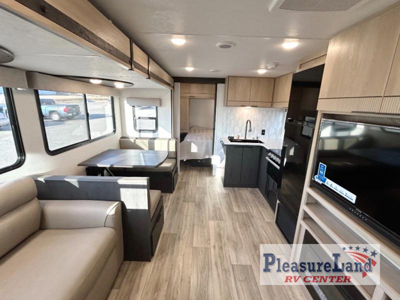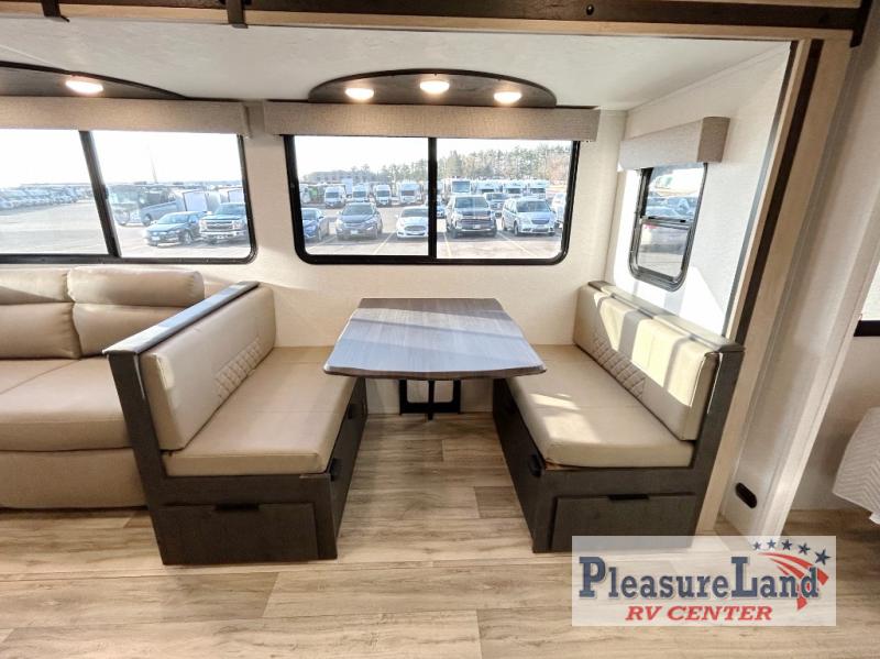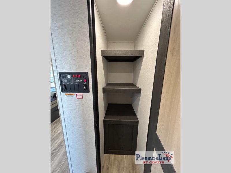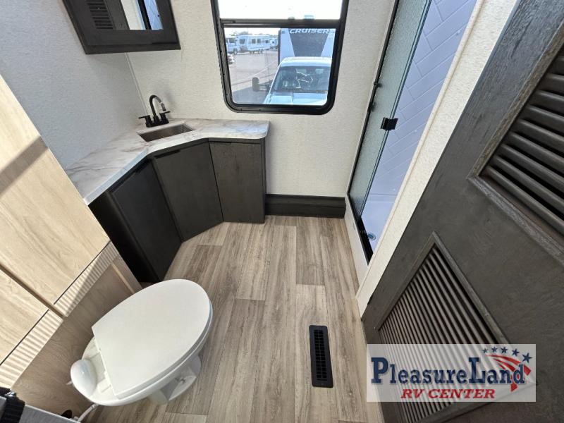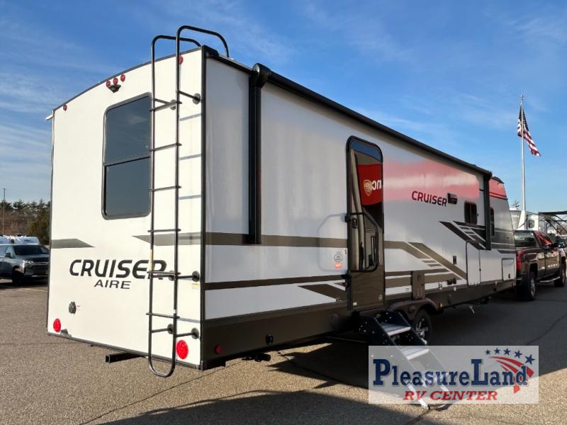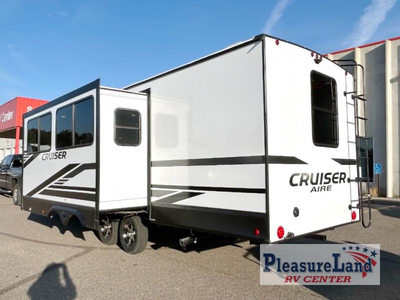 Each one of these CrossRoads RV Cruiser Aire fifth wheels and travel trailers have high end features incorporated into them! Some of these features include a Secure Stance entry step, a pass-through storage with magnetic slam latch doors to keep your gear stored safely, and an electric awning with LED lights to highlight the good times at night. Their construction consists of a total truss roof system, an aerodynamic front cap, plus laminated sidewalls, slide ends and rear wall for added durability. Stay connected where ever you go with the Winegard 360+ WiFi prep, and the HDTV will keep you entertained on those rainy days. The interior includes new cabinets, stainless steel appliances, roller shades, decorative backsplash, and many more comforts!