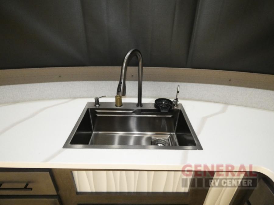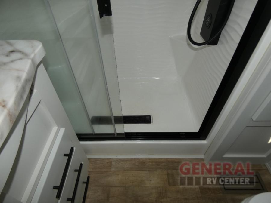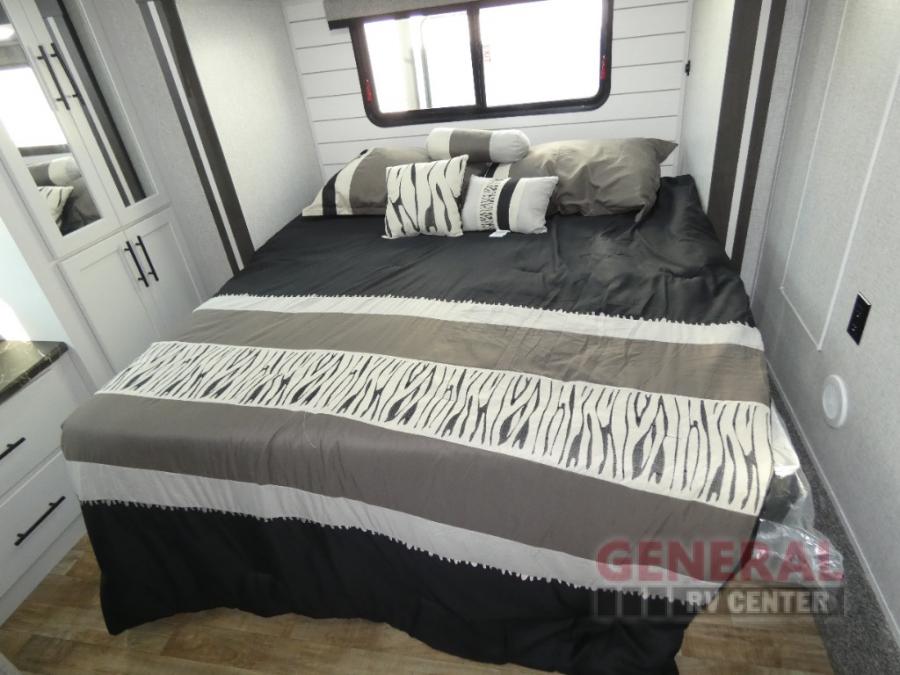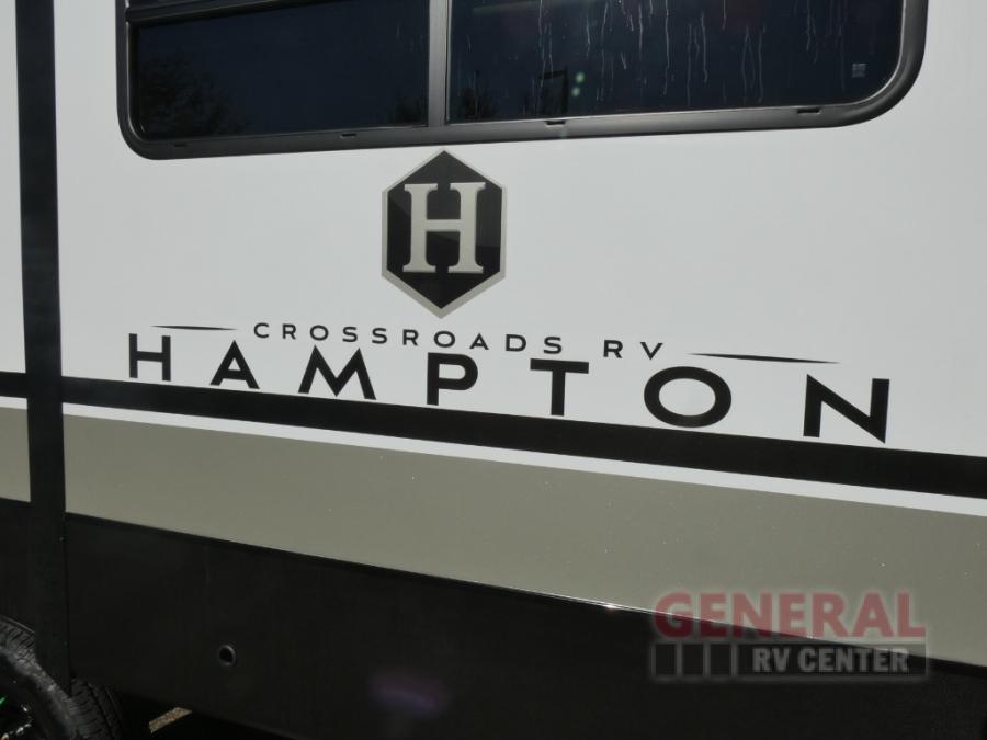 Each Hampton destination trailer by CrossRoads RV includes a one-piece fiberglass front cap, tinted glass windows, and an outside faucet that will surely come in handy when wanting to rinse off your hands or even shoes after exploring outdoors. Each is constructed with a fiberglass roof and floor insulation with radiant tech foil, an enclosed underbelly, and severe weather welded mounts and rain gutters along the entire roof line. And, the Convenience package that comes standard includes KeyTV, a microwave, a quilted bedspread, a power vent in the bathroom, and more. Other interior features offered include decorative accent lighting, a 9-foot floor to ceiling height, a patio door with a swing-out assist rail, and two-toned wood fascia. So choose your destination, select your favorite Hampton, and start feeling at home when you are actually on vacation!