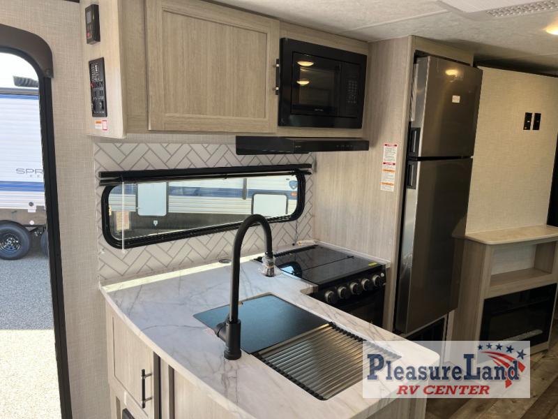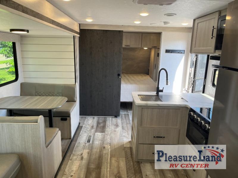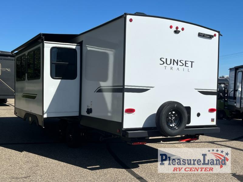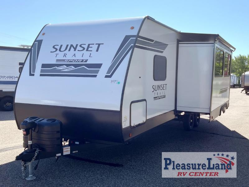 With any Sunset Trailer Sport Series travel trailer by CrossRoads RV, you will enjoy comfort at every turn at a more affordable price point! The 6-sided laminated structure, enclosed underbelly, and HyperDeck flooring provide a durable RV made to last. There is also a power awning outdoors, along with backup camera prep, a power tongue jack, and an outside water port if you need to wash of hiking gear. Each model includes pressed kitchen countertops, roller shades, LED lights and many comforts to make each camping trip one to remember!