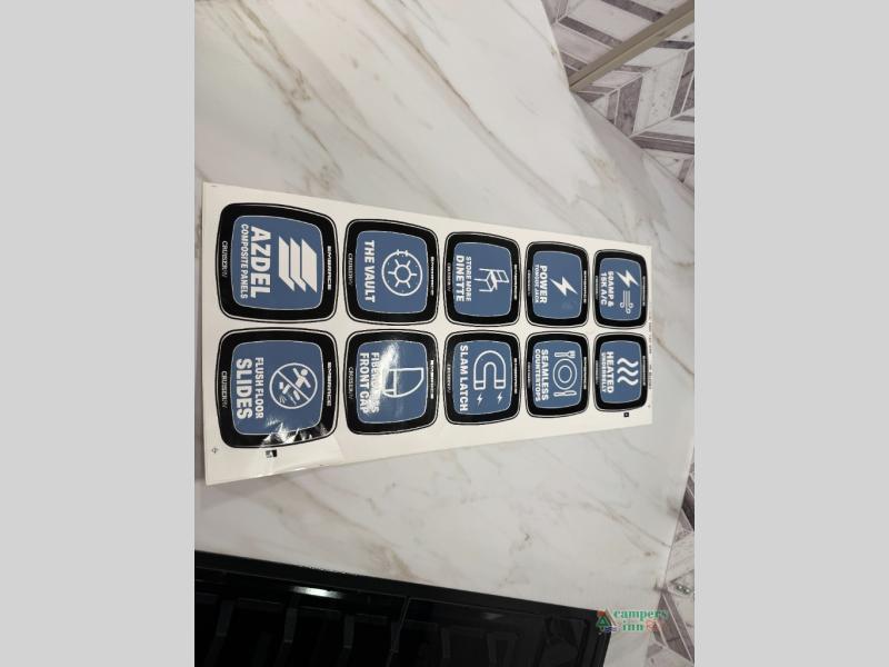 Experience a peace of mind with each one of these Cruiser Embrace travel trailers! Durable construction consists of a painted front cap with LED lights, a one-piece vinyl TPO membrane roof, plus a heated and enclosed underbelly to help extend your camping season. There are also 15" rims and tires on heavy-duty axles, 5/8" tongue and groove plywood flooring, a power awning with LED lights, plus more top selling features. Inside, you'll enjoy seamless countertops, concealed cabinet door hinges, an LED lighting package, and many more comforts.