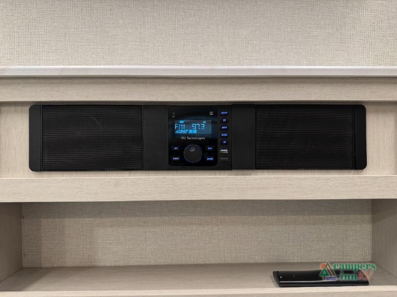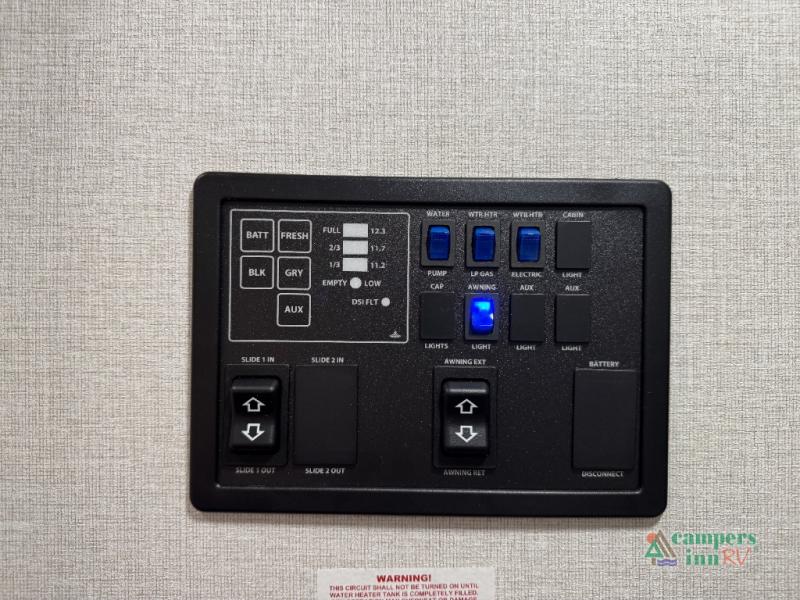 Plan out your summer vacations in this spacious travel trailer for five to six people. The large slide out will allow everyone enough space indoors including the dog who will find plenty of space to nap after a long hike. There is also a full rear bath to get cleaned up in. The chef will have everything they need to prepare a delicious lunch on the three burner cooktop, plus there is a walk-in pantry for dry goods and snacks. You can even entertain outdoors easily with the outdoor kitchen including a griddle. Your crew can dine at the booth dinette, or enjoy some fresh air under the 20' power awning with LED lights. You will feel right at home with a private bedroom up front that includes a queen bed and dual wardrobes for all your clothes!