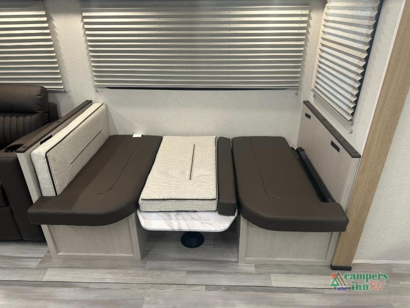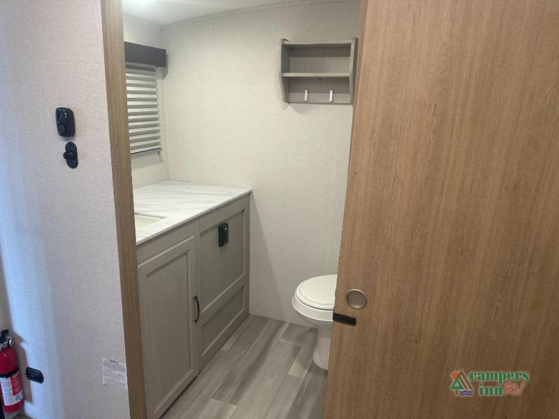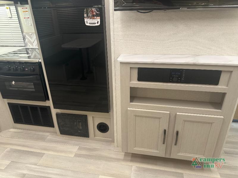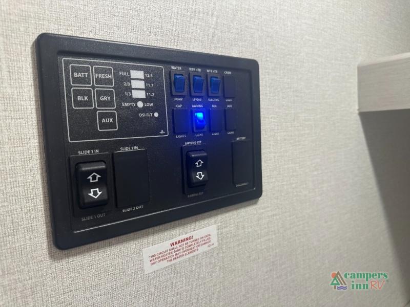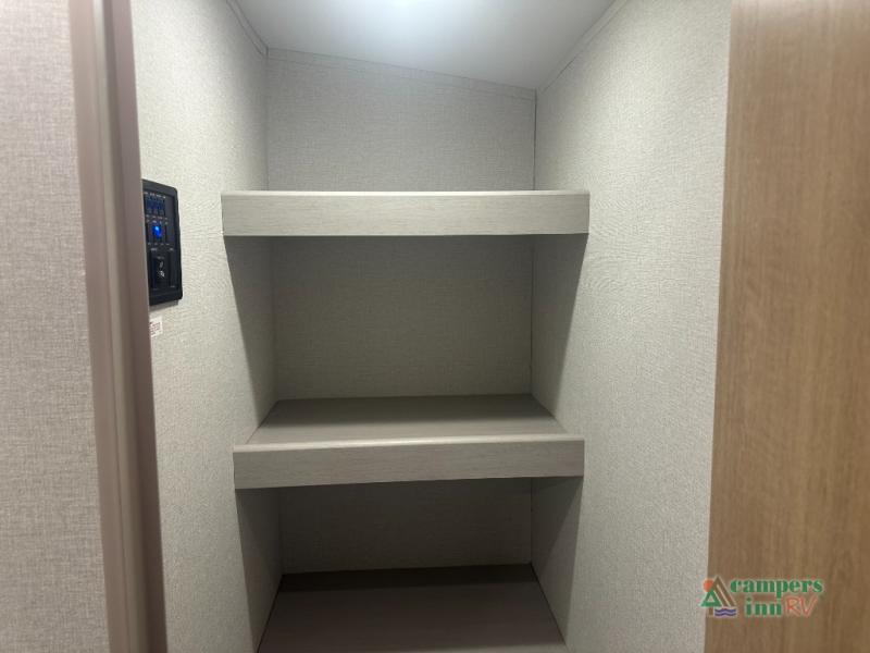 Plan out your summer vacations in this spacious travel trailer for five to six people. The large slide out will allow everyone enough space indoors including the dog who will find plenty of space to nap after a long hike. There is also a full rear bath to get cleaned up in. The chef will have everything they need to prepare a delicious lunch on the three burner cooktop, plus there is a walk-in pantry for dry goods and snacks. You can even entertain outdoors easily with the outdoor kitchen including a griddle. Your crew can dine at the booth dinette, or enjoy some fresh air under the 20' power awning with LED lights. You will feel right at home with a private bedroom up front that includes a queen bed and dual wardrobes for all your clothes!
