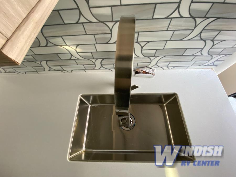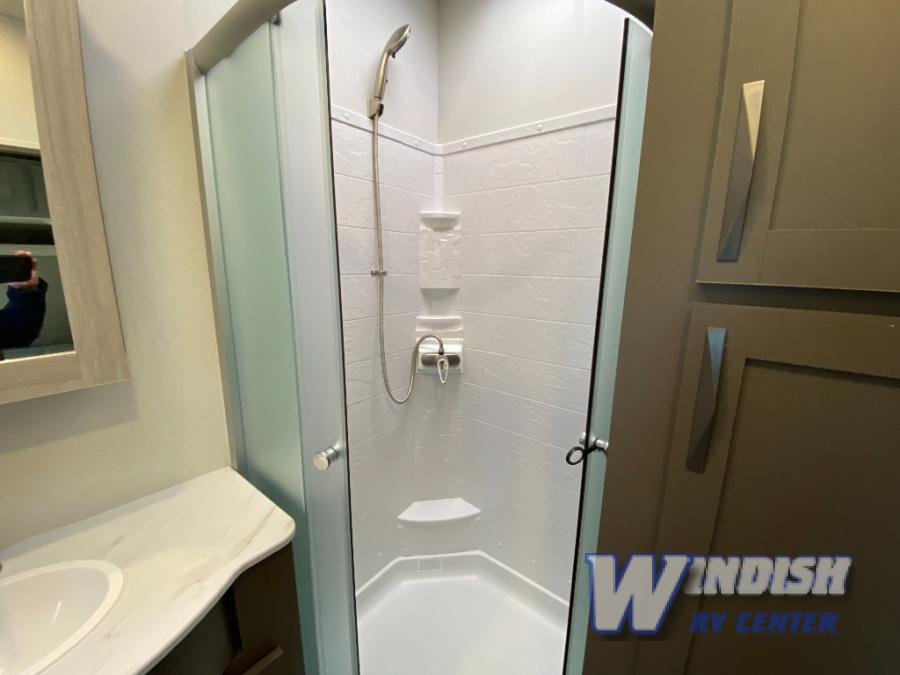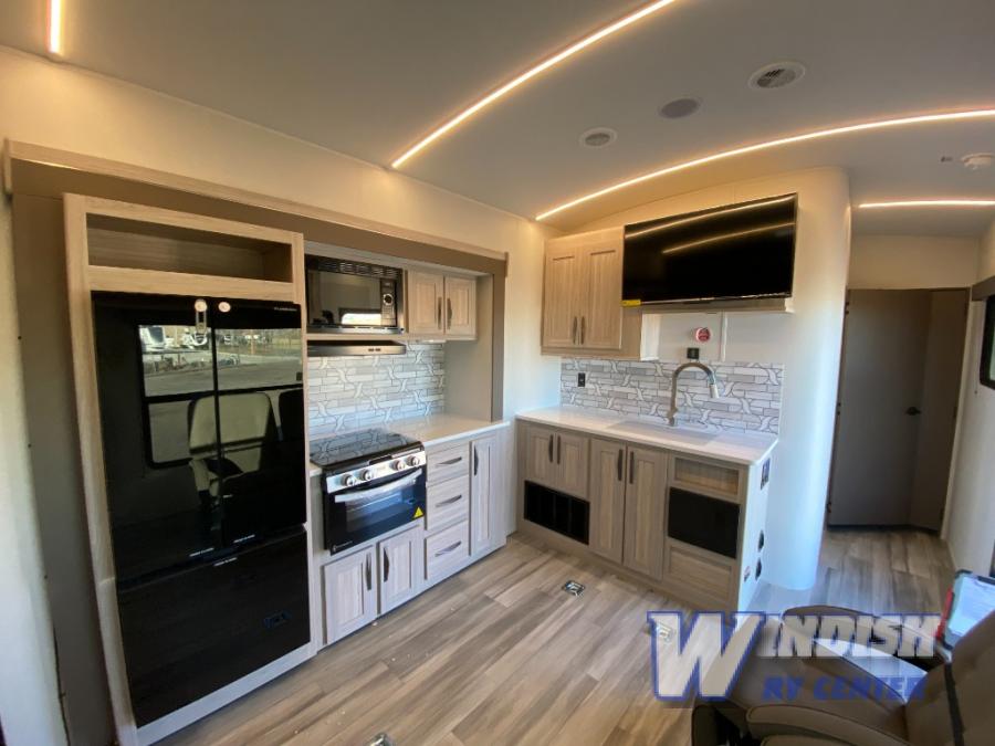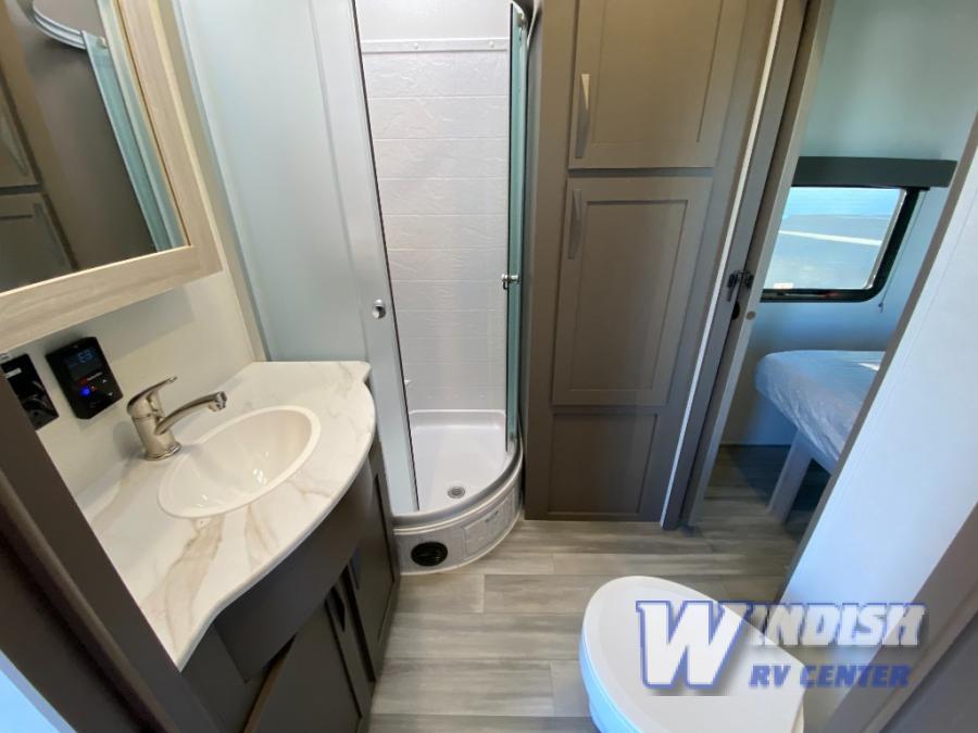 Just because you want to kick up some mud during the day, doesn't mean you can't enjoy at-home comforts in the evening. You can do just that and more in this toy hauler for six. After you've unloaded the side-by-side, fill it up with the 30 gallon fuel tank, then head out on an adventure. It will be so easy to clean up in the dual entry bath when you return, and the chef of your group can start lunch on the three burner cooktop. Everyone can dine at the opposing sofas with a dinette, or head outdoors to sit under the 19' power awning with LED lights. There are even two lounge chairs indoors if you want to enjoy a cup of coffee to relax. You'll find the king bed in the front master will give you plenty of space on either side of the bed to get dressed for bed, plus there are dual bedroom wardrobes to keep your clothes tidy!