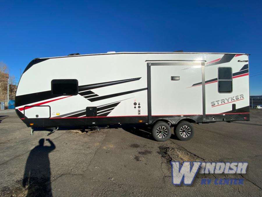 Each Stryker toy hauler travel trailer by Cruiser starts with a powder coated structural steel I-beam frame, Azdel composite laminated sidewalls, and a 102" wide body, perfect for your side-by-side, dirt bikes, or kayaks! The EZ flex rubberized suspension provides smooth towing on tougher roads, and the painted molded fiberglass front cap not only looks sleek, but provides better protection. Inside, you'll find barreled ceilings up to 98" in height, solid surface kitchen cabinets, and numerous USB ports and 110V outlets. There's so much more to love about the Stryker toy haulers, like the premium sound system, large windows, tons of storage space, and the list goes on!