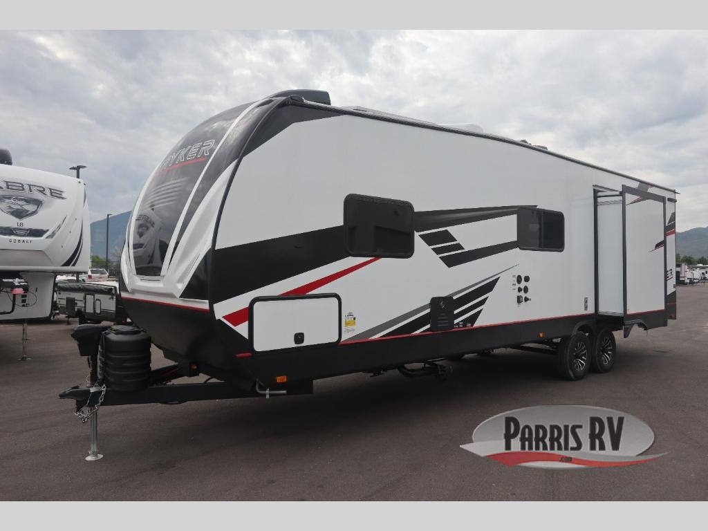 Each Stryker toy hauler travel trailer by Cruiser starts with a powder coated structural steel I-beam frame, Azdel composite laminated sidewalls, and a 102" wide body, perfect for your side-by-side, dirt bikes, or kayaks! The EZ flex rubberized suspension provides smooth towing on tougher roads, and the painted molded fiberglass front cap not only looks sleek, but provides better protection. Inside, you'll find barreled ceilings up to 98" in height, solid surface kitchen cabinets, and numerous USB ports and 110V outlets. There's so much more to love about the Stryker toy haulers, like the premium sound system, large windows, tons of storage space, and the list goes on!