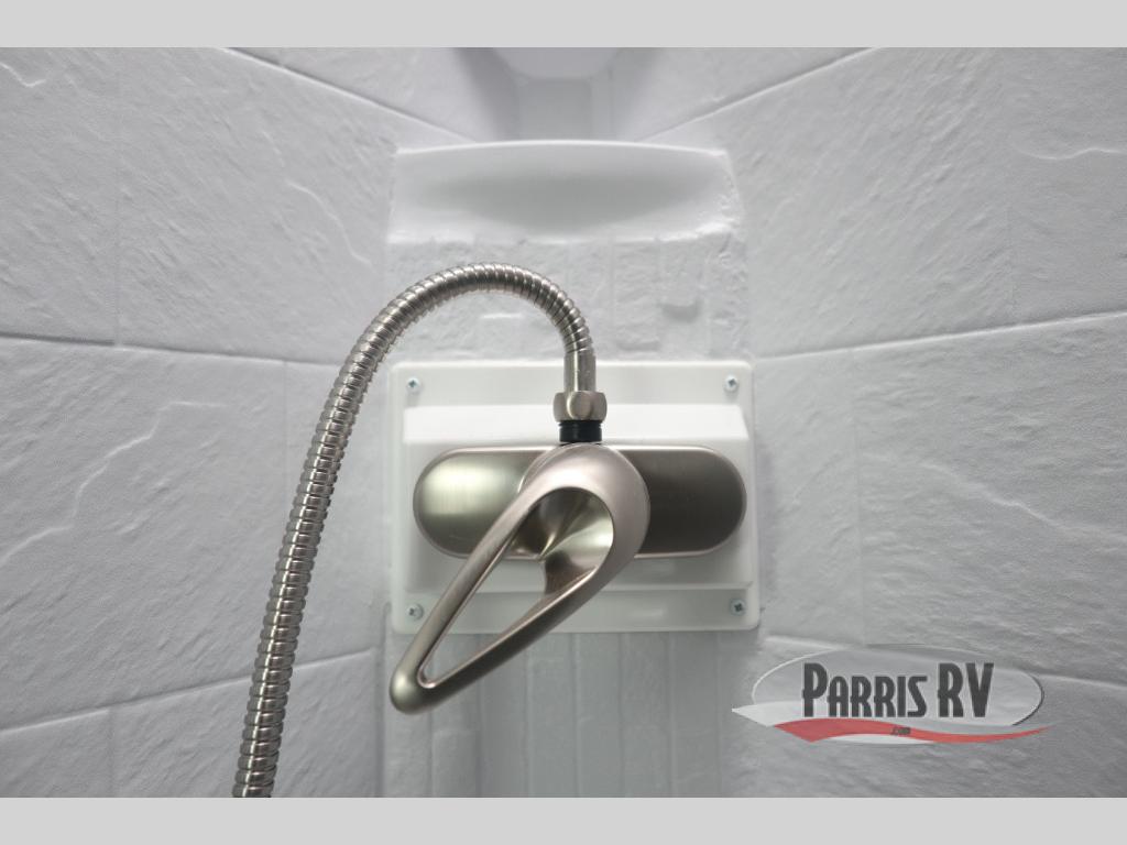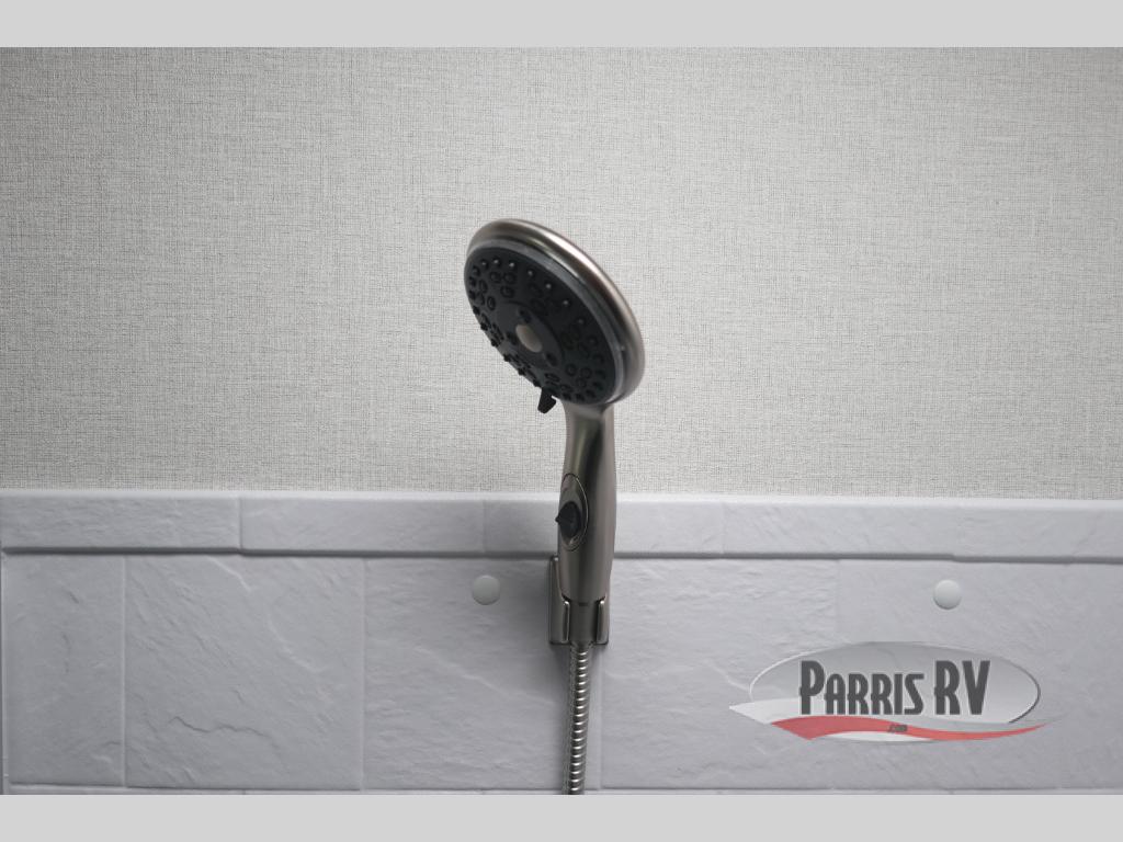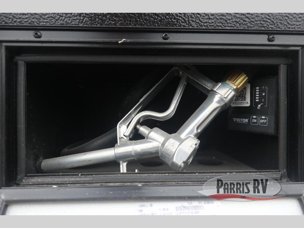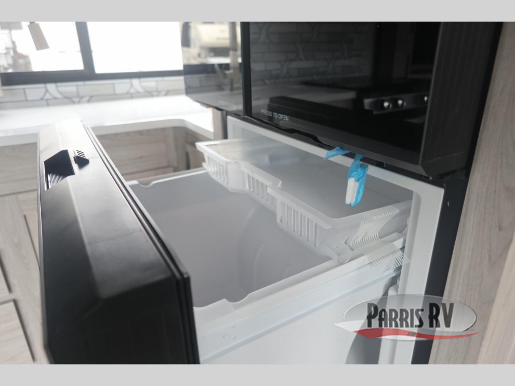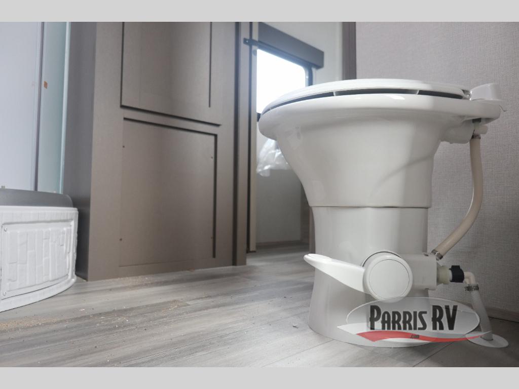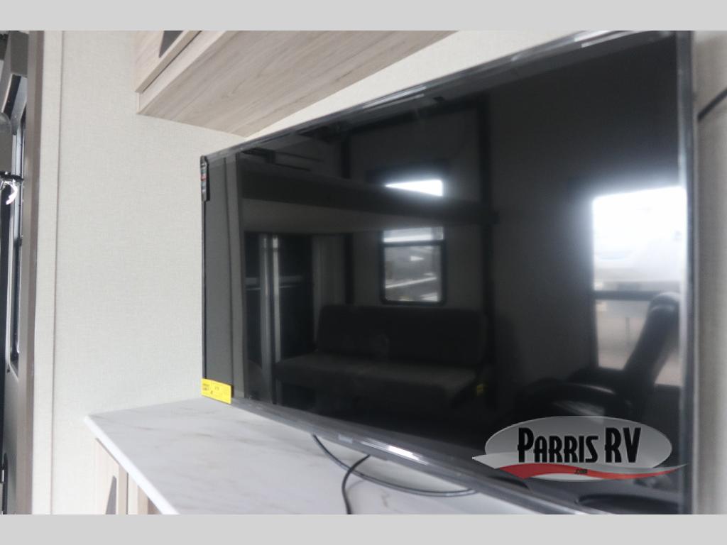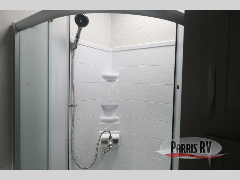 This toy hauler with an 18' garage is sure to meet all your expectations. Once the dirt bikes are unloaded, you can relax on the opposing sofa with a dinette, and there is an optional three seasons glass door that can be added for more convenience. The dual lounge chairs across from the fireplace slide out will make your space feel more like home, and the full kitchen lets you make meals each day. You'll also find a dual entry bath that will create a front master bedroom. Here, a king bed will provide a great night's rest and the dual wardrobes help keep your space tidy!