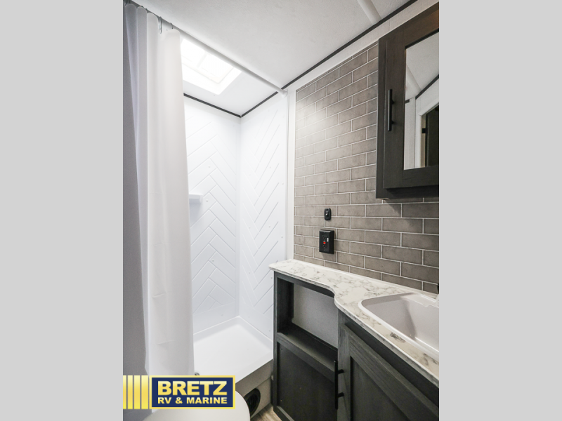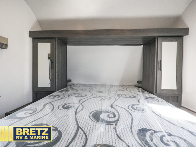 You can take along extra family and friends in this Aspen Trail LE bunkhouse model. The rear double-size bunks will easily sleep kids and their friends, or added family. There is also a front bedroom with a residential 60" x 80" queen size bed.  A single slide helps open up the floor space for more room to move about with everyone inside, and it features a pantry and convertible U-shaped dinette. This is a great place for game night and meals which you can easily make in the fully equipped kitchen. In the rear corner you will find a full bath with shower, toilet, and sink which means no camp facilities in the middle of the night with a flashlight!