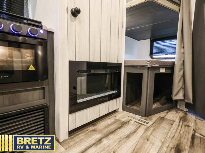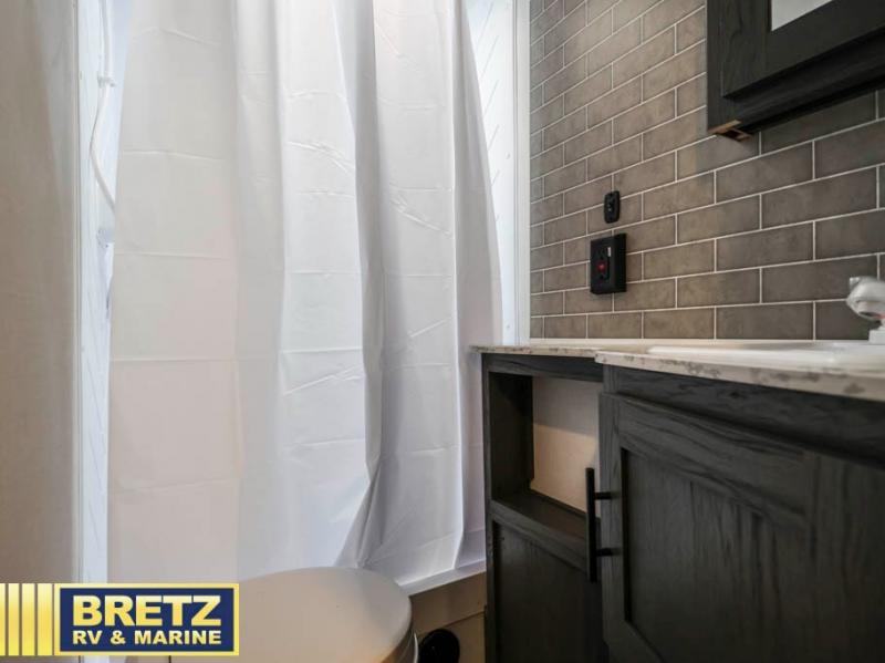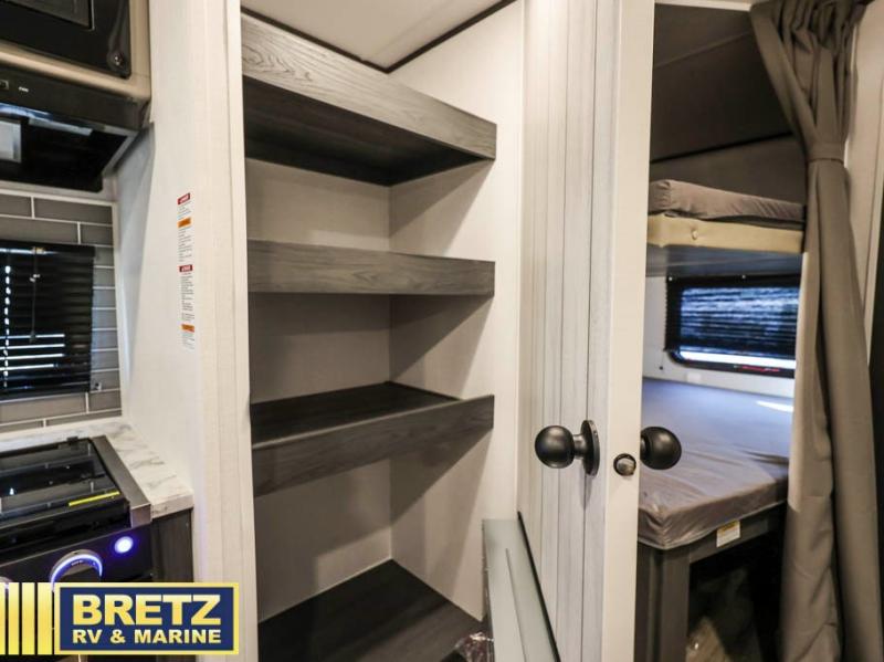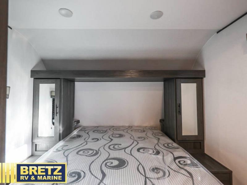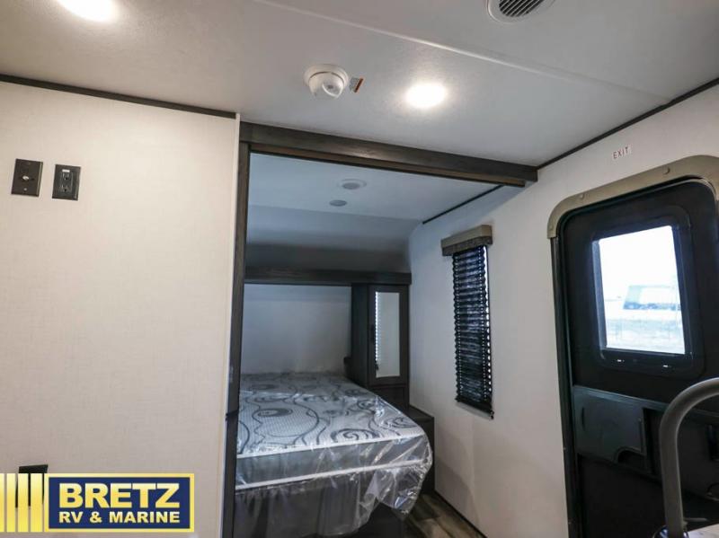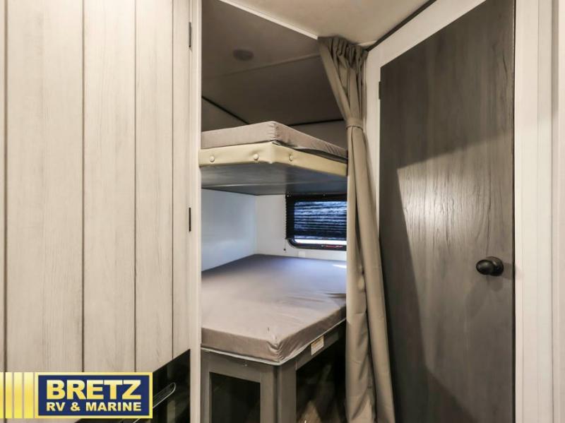 You can take along extra family and friends in this Aspen Trail LE bunkhouse model. The rear double bed bunks will easily sleep kids and their friends, or added family. There is also a front bedroom with a residential 60" x 80" queen size bed featuring dual entry into the bedroom from either side of the entertainment center. A single slide helps open up the floor space for more room to move about with everyone inside, and it features a pantry and convertible U-shaped dinette. This is a great place for game night and meals which you can easily make in the fully equipped kitchen. In the rear corner you will find a full bath with shower, toilet, and sink which means no camp facilities in the middle of the night with a flashlight!