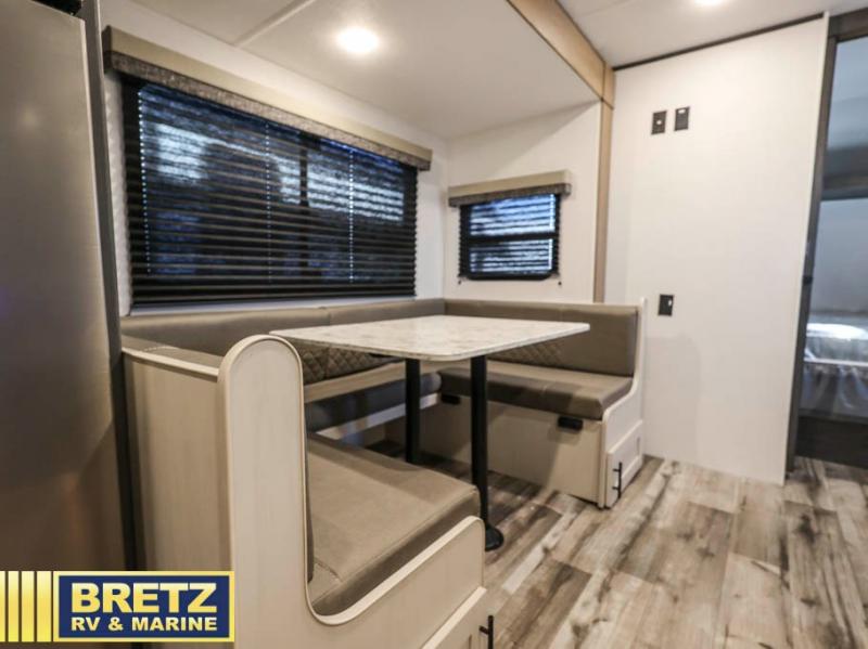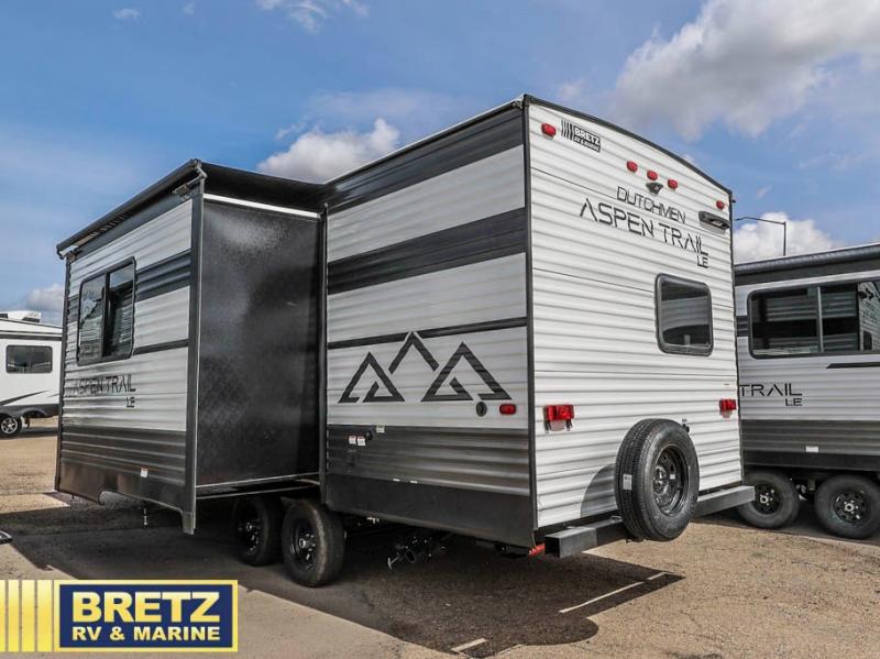 With any Aspen Trail LE travel trailer by Dutchmen, you will have a durable roof structure with a TPO roof, 3/8" decking, an insulated structure with a metal exterior panel, plus superior A/C cooling for those hot summer camping months. The interior offers a Home Series interior design collection for an at home feel, full extension drawer guides throughout, oversized windows, pleated shades, and no carpet to quickly clean up sand and water from the lake. You'll also appreciate the magnetic baggage door catches, a high output furnace, an on-demand water heater, and the Solar Spirit Packages that will allow you to do some off-grid camping. Make your selection today and enjoy a smaller, lighter-weight RV!