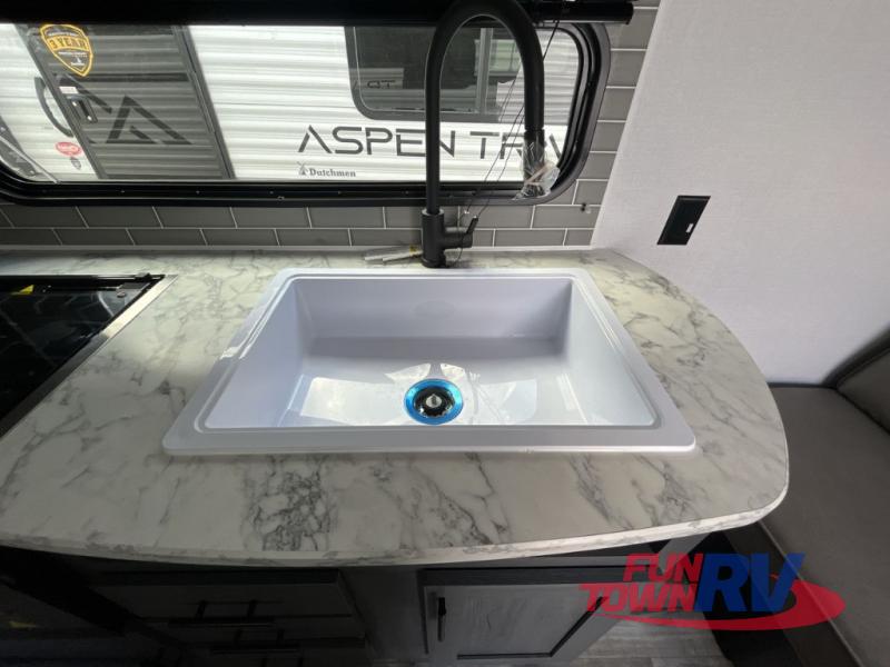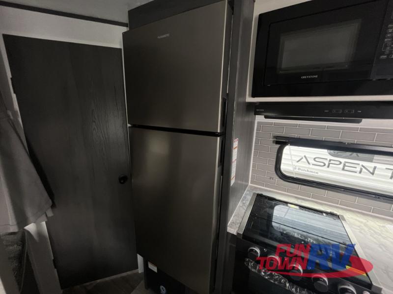 With any Aspen Trail LE travel trailer by Dutchmen, you will have a durable roof structure with a TPO roof, 3/8" decking, an insulated structure with a metal exterior panel, plus superior A/C cooling for those hot summer camping months. The interior offers a Home Series interior design collection for an at home feel, full extension drawer guides throughout, oversized windows, pleated shades, and no carpet to quickly clean up sand and water from the lake. You'll also appreciate the magnetic baggage door catches, a high output furnace, an on-demand water heater, and the Solar Spirit Packages that will allow you to do some off-grid camping. Make your selection today and enjoy a smaller, lighter-weight RV!