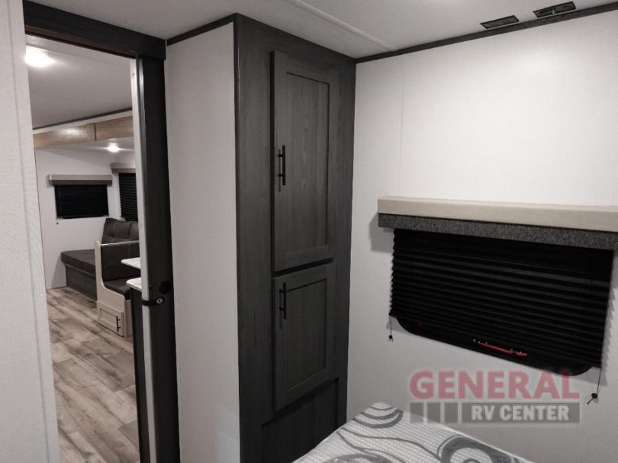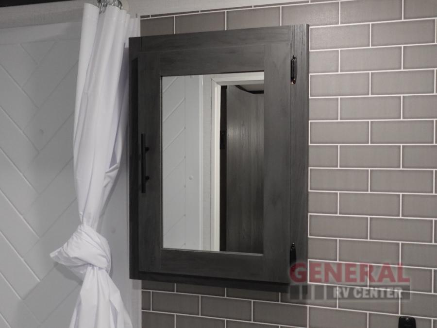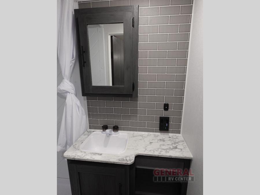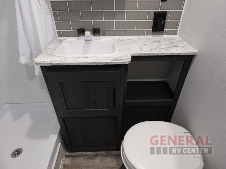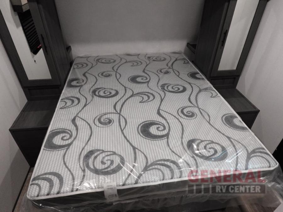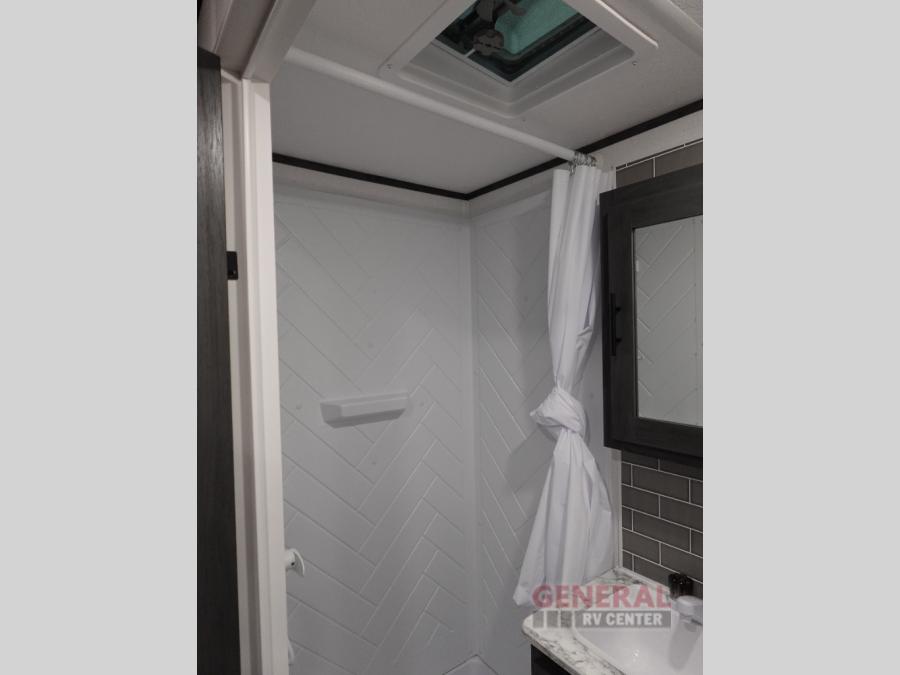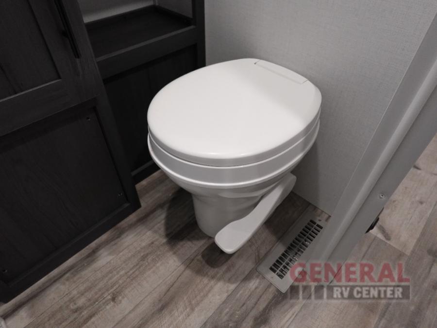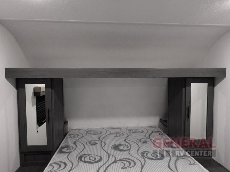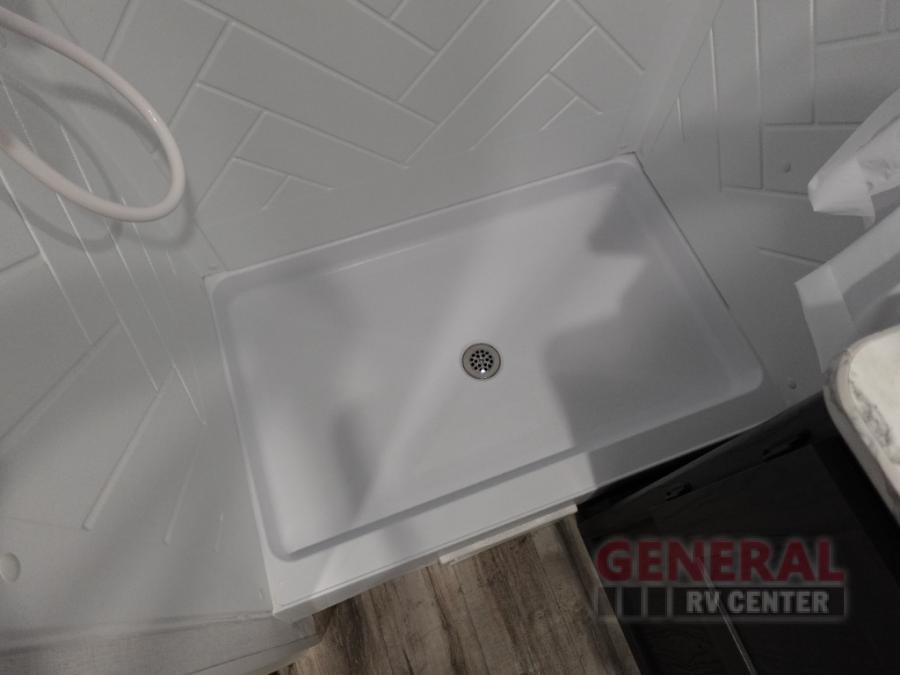 With dual entry doors, you can easily enter and exit this travel trailer! The jackknife sofa with footrest and booth dinette are next to each other near the fireplace, as well as two rear recliners allowing you to visit with other RVers or your family. The cook will have an ovenĀ and a microwave to make meals, and a 10 cu. ft. 12V refrigerator for cold items, plus a galley sink with high rise faucet to keep the dishes clean. Speaking of being clean, the full bathroom offers a shower with exhaust fan to eliminate unwanted steam as you clean yourself up after a fun day at the beach. The front private bedroom has a residential queen bed and one of the entrance/exit doors so you can slip out for an early morning fishing trip!