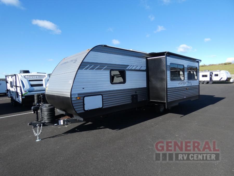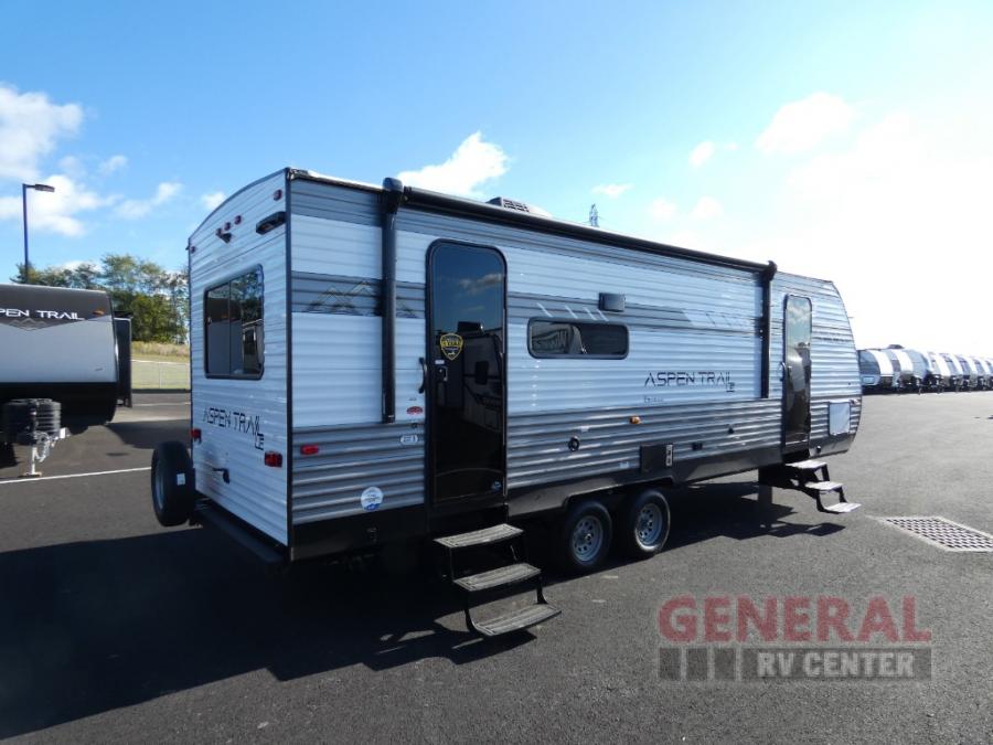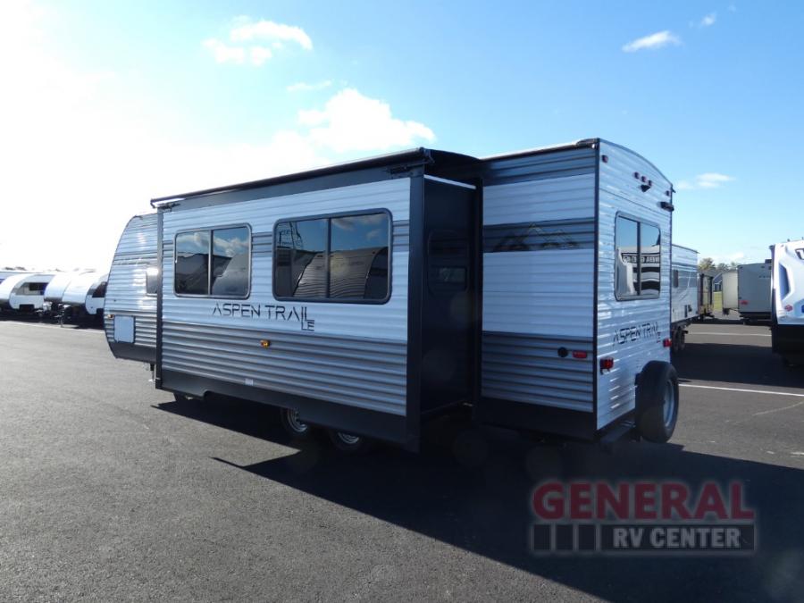 With any Aspen Trail LE travel trailer by Dutchmen, you will have a durable roof structure with a TPO roof, 3/8" decking, an insulated structure with a metal exterior panel, plus superior A/C cooling for those hot summer camping months. The interior offers a Home Series interior design collection for an at home feel, full extension drawer guides throughout, oversized windows, pleated shades, and no carpet to quickly clean up sand and water from the lake. You'll also appreciate the magnetic baggage door catches, a high output furnace, an on-demand water heater, and the Solar Spirit Packages that will allow you to do some off-grid camping. Make your selection today and enjoy a smaller, lighter-weight RV!