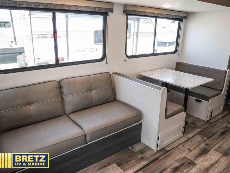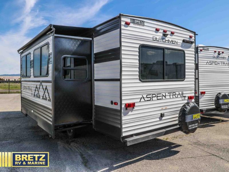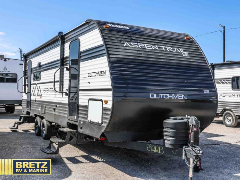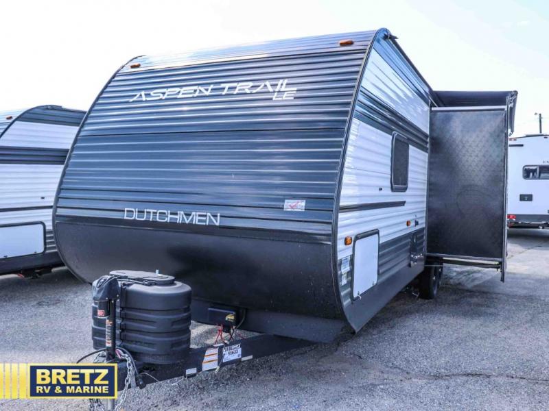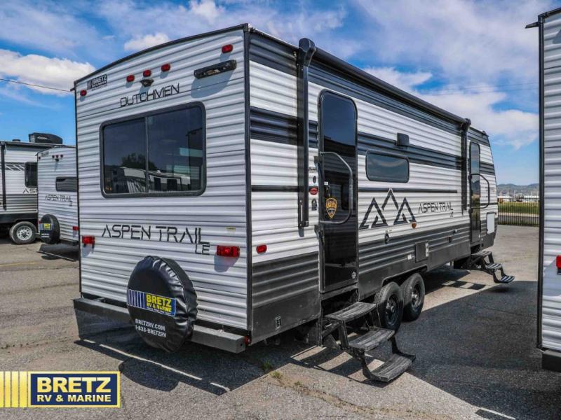 With any Aspen Trail LE travel trailer by Dutchmen, you will have front diamond plate protection, magnetic baggage door catches, and easy lube axles for smooth towing. The interior offers a Home Series interior design collection for an at-home feel, full extension drawer guides throughout, oversized windows, pleated shades, and no carpet to quickly clean up sand and water from the lake. You'll also appreciate the high efficiency furnace, on-demand tankless water heater, and the Solar Spirit Packages for off-grid capabilities. Make your selection today and enjoy a smaller, lighter-weight RV!