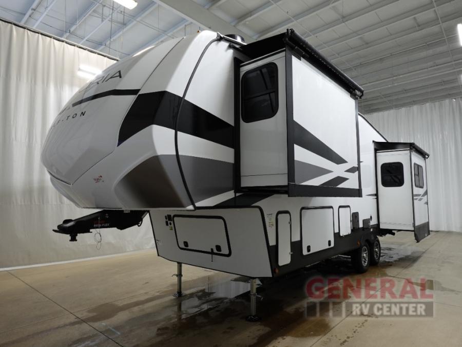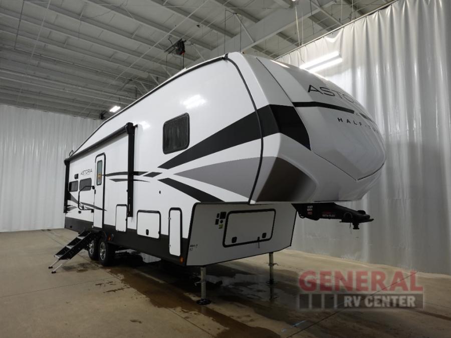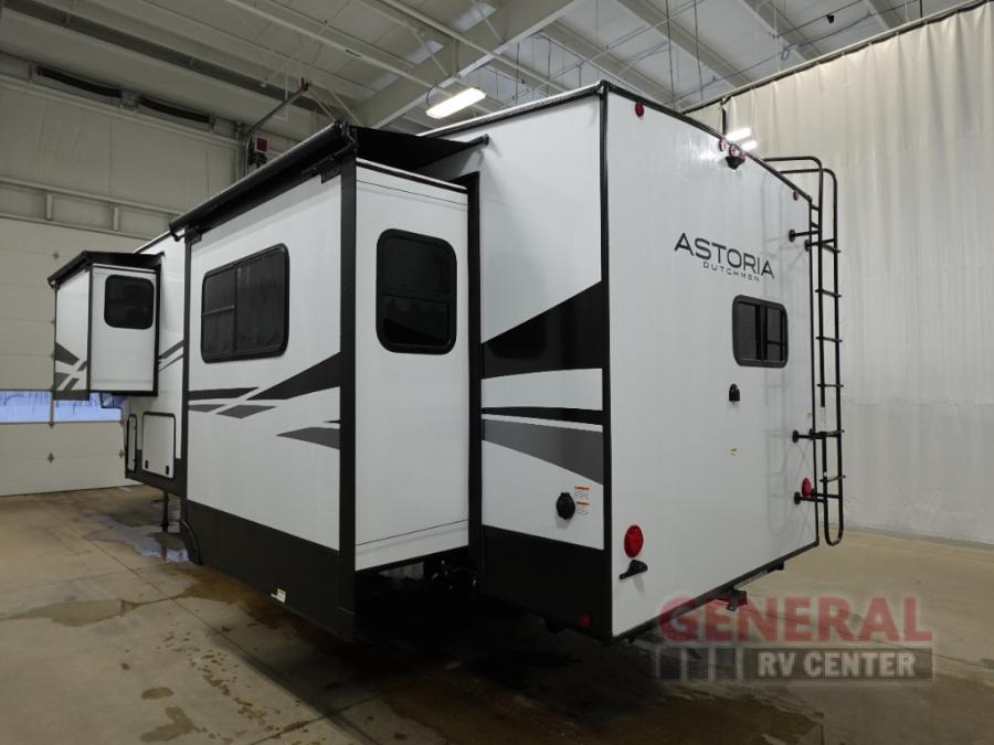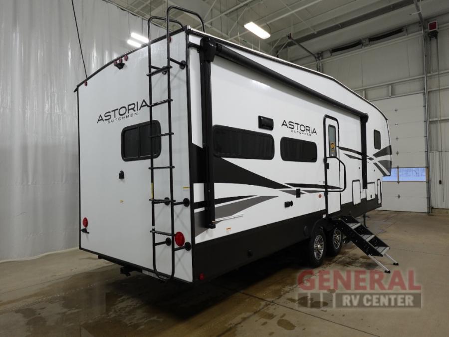 Each one of these Dutchmen RV Astoria Half-Ton fifth wheels feature a fiberglass exterior for added durability and an All Weather Thermal Package so you can camp all year long! There are also MorRyde Solid entry steps, slam latch baggage doors, and many more exterior conveniences. You'll enjoy a 200W solar panel for off-grid capabilities, an X1 back up camera for easy parking, and a power awning with LED lights for an inviting outdoor space. The interior is designed with bathroom backsplash, night shades throughout the living area, and Thomas Payne furniture collection. The on-demand tankless water heater will provide endless hot showers, and the dual ducted A/C will keep you cool all summer long.
