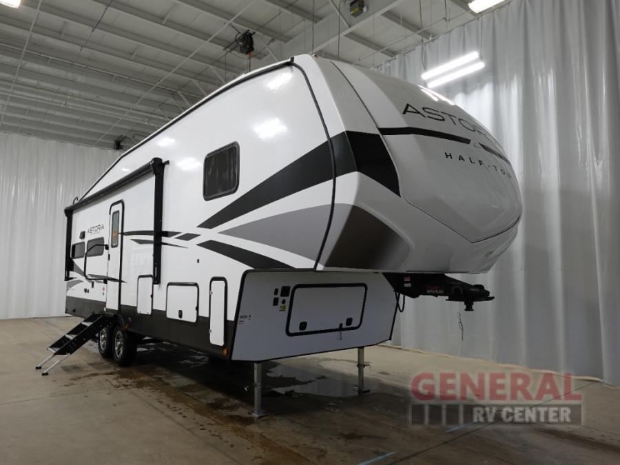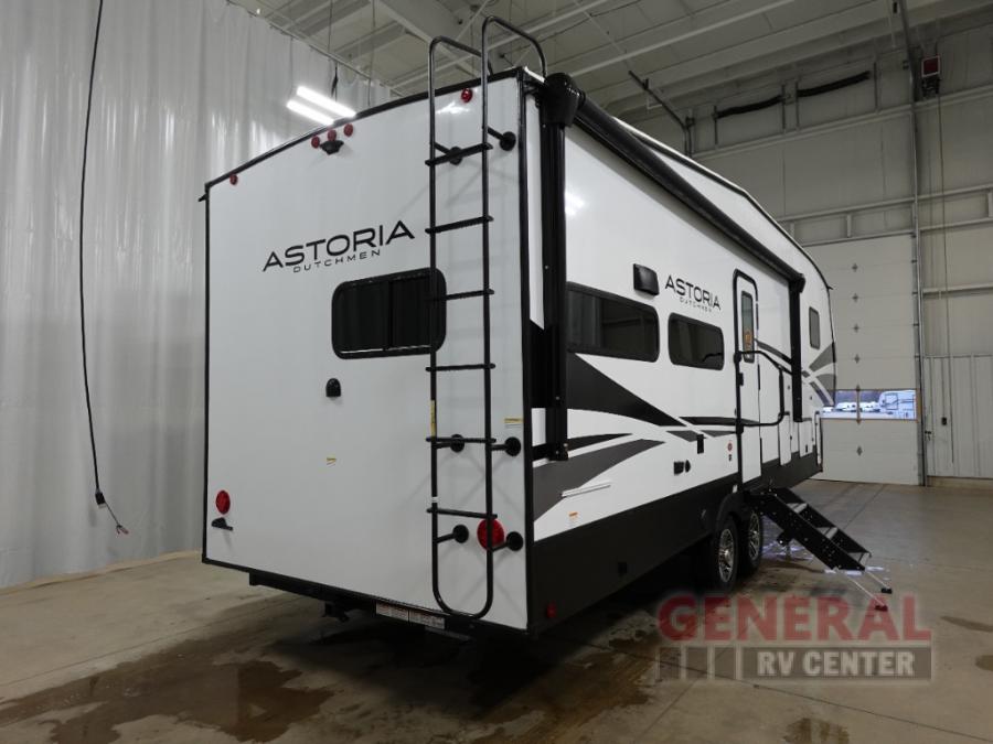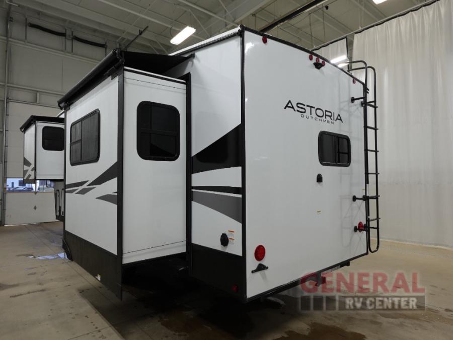 Each one of these Dutchmen RV Astoria Half-Ton fifth wheels feature a fiberglass exterior for added durability and an All Weather Thermal Package so you can camp all year long! There are also MorRyde Solid entry steps, slam latch baggage doors, and many more exterior conveniences. You'll enjoy a 200W solar panel for off-grid capabilities, an X1 back up camera for easy parking, and a power awning with LED lights for an inviting outdoor space. The interior is designed with bathroom backsplash, night shades throughout the living area, and Thomas Payne furniture collection. The on-demand tankless water heater will provide endless hot showers, and the dual ducted A/C will keep you cool all summer long.
