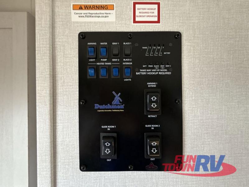 Each one of these Dutchmen RV Astoria and travel trailers offer highly visible, value-driven standard features and a sturdy construction with Vacuum Bonded walls! You can store your outdoor gear in the pass-through storage areas and the slam latch baggage doors. Their modern interior décor includes carpet free slides, blackout roller shades, and designer valances. HyperDeck flooring will also be easy to clean, as well as hold up through each and every adventure. Don't waste anymore time, come find your perfect model today!