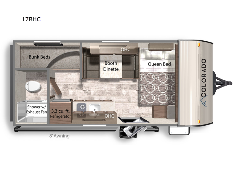 This Dutchmen Colorado travel trailer 17BHC highlights: