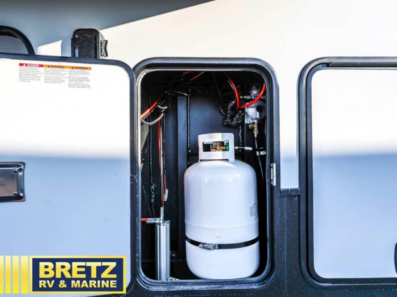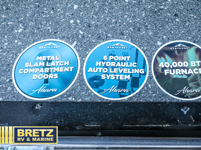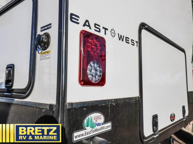 There is just too much luxury to name on the EAST TO WEST Ahara fifth wheel! These units are quite impressive, and once you see them, you'll know what we mean. The Ahara first grabs your attention with its hi-gloss gel-coated fiberglass exterior which showcases two power awnings with LED lights, an LP quick connect, an exterior cable/satellite hookup, and a universal all-in-one docking station. For towing, you'll find a MORryde CRE 3000 suspension, Dexter Gladiator thick-wall 7,000-LB axles with Nev-R-Adjust brakes, and preparations for a rearview camera. Traveling during all seasons is also made easy with the high-efficiency triple A/C system, a 40,000 BTU high-capacity furnace, a heated, insulated, and enclosed underbelly and dump valves with circulating heat, and Radiant Technology Composites insulation in the roof, front cap, and underbelly.