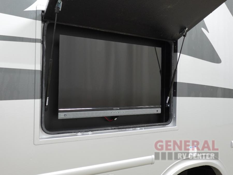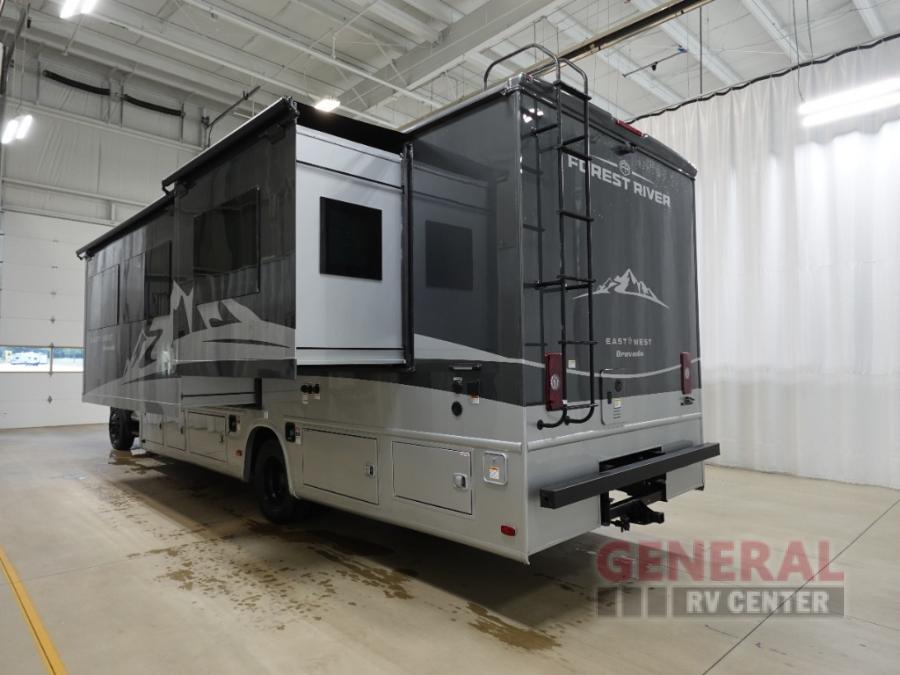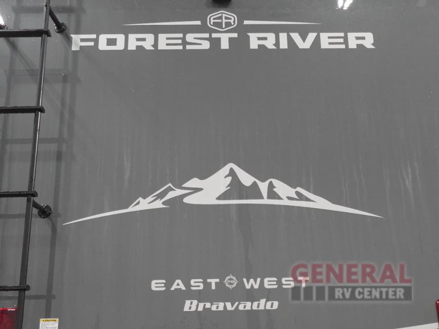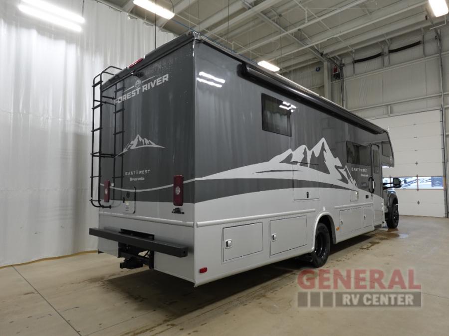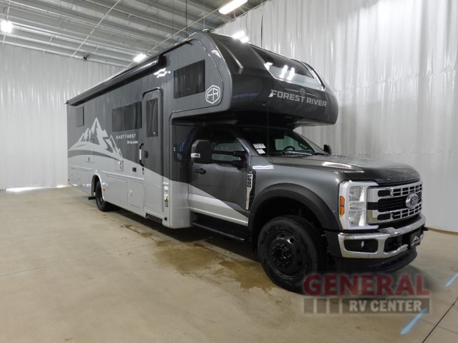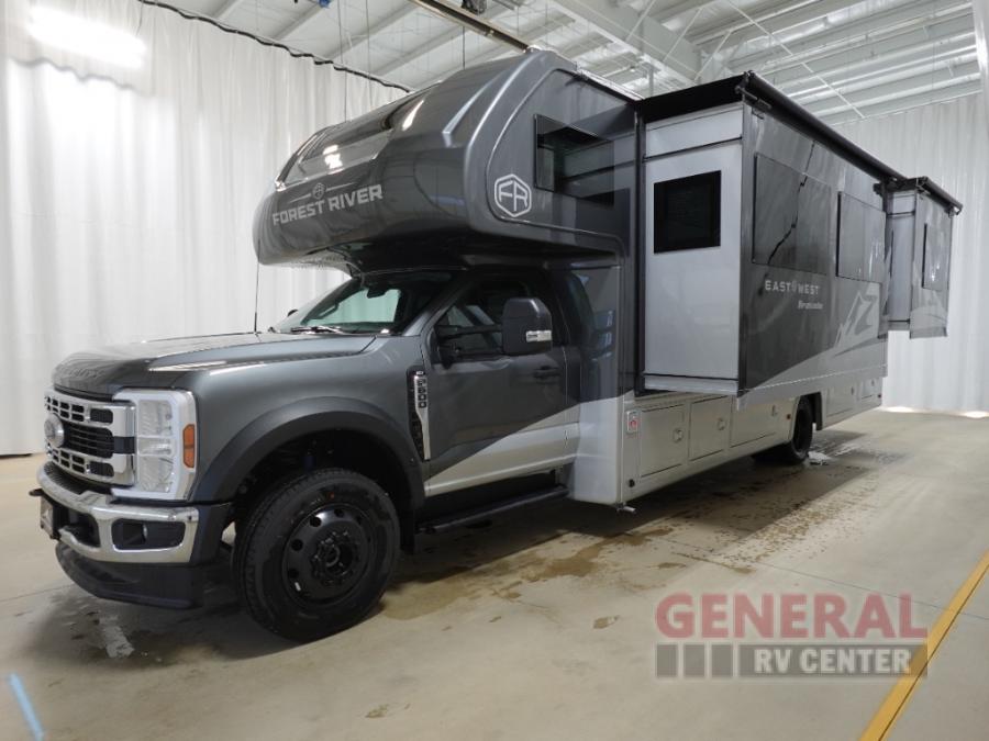 The Bravado Super C diesel motorhome by EAST TO WEST is packed with amenities that will let you travel boldly and confidently. There is a Ford F600 4x4 chassis, 6.7L PowerStroke V8 engine, and 10 speed SelectShift automatic transmission for the ultimate driving experience. You'll stay comfortable with the 15K main A/C and 13.5K second A/C, plus there is an 8K Cummins Onan generator to meet your power needs. The interior comforts are endless and the exterior conveniences will make life on the road hassle-free. Choose the Bravado today and you won't be disappointed!