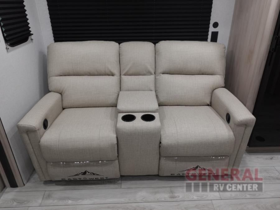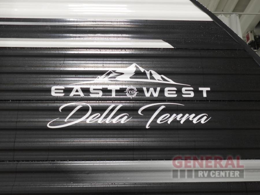 Each Della Terra travel trailer by EAST TO WEST is constructed with an enclosed and heated underbelly and enclosed holding tanks so you can camp all year long. There is also a power tongue jack with an LED light for easy set up and a power awning with LED lights you can rest under after you've unpacked. The Explore Comfort Package comes seamless pressed countertops, kitchen backsplash, window valance package with black night shades, and many more comforts. You will also appreciate the Adventure Outdoor Package with backup camera prep and solar prep, a tankless water heater, an RV grill quick disconnect, and a universal docking station with battery disconnect.