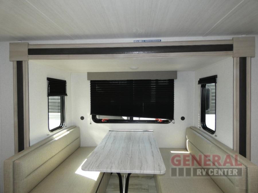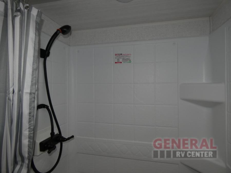 This Della Terra LE is perfect for your family of six or eight. With 50" x 68" bunks in the back, and a queen bed in front, as well as a booth dinette slide, you can easily sleep seven or eight total! The dinette is a great place to relax and enjoy a meal, or to socialize and play a game when inside, and the slide provides more interior space for everyone. There is a rear corner bath featuring a shower, plus a toilet and vanity with a sink. On the outside, enjoy a nice pass-through storage area up front and additional storage under the bunks. There is also an exterior shower which is great for rinsing off dirty feet before coming inside. It's time to grab some gear and a few friends and get camping!