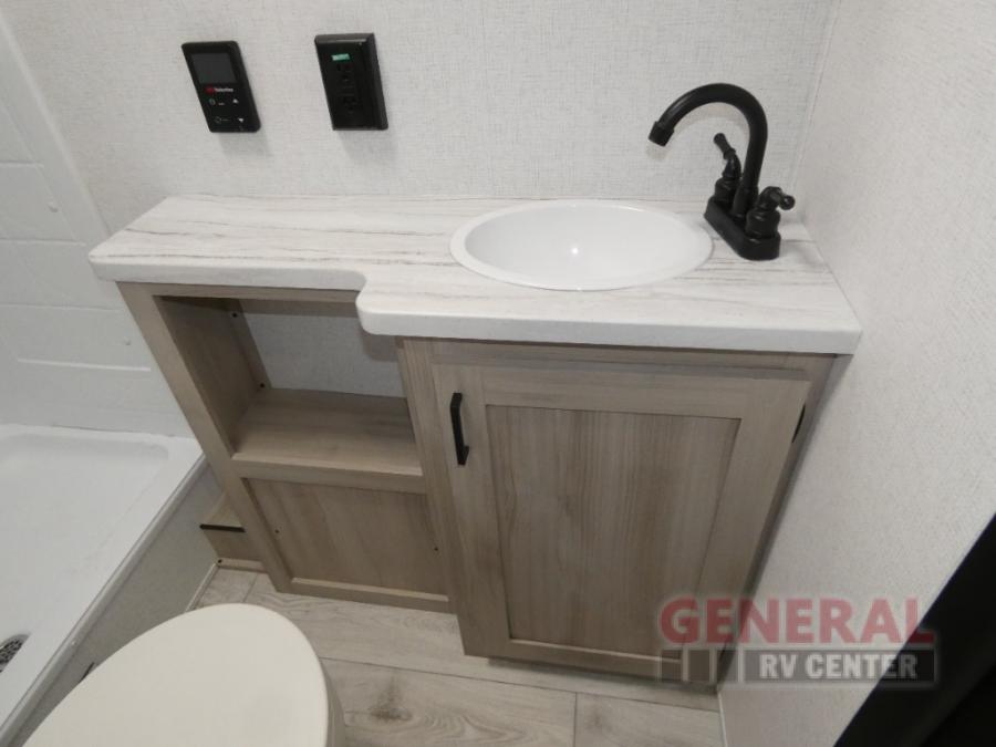 With any Della Terra LE travel trailer by EAST TO WEST, there is USA manufactured furniture, seamless countertops (no T-mold), and a 10.7 cu.ft. frost-free 12 volt refrigerator for your perishables. A Solera power awning with adjustable legs and LED light strip will also provide you with a great outdoor living area protected from both the sun and rain, and the outside hot/cold shower will let you easily wash off hiking gear or fill the dogs water bowl. These trailers also include Furrion back up camera prep, On The Go ladder prep, and slide out awning prep that will allow you to add these features to make your camping experience easier than ever.